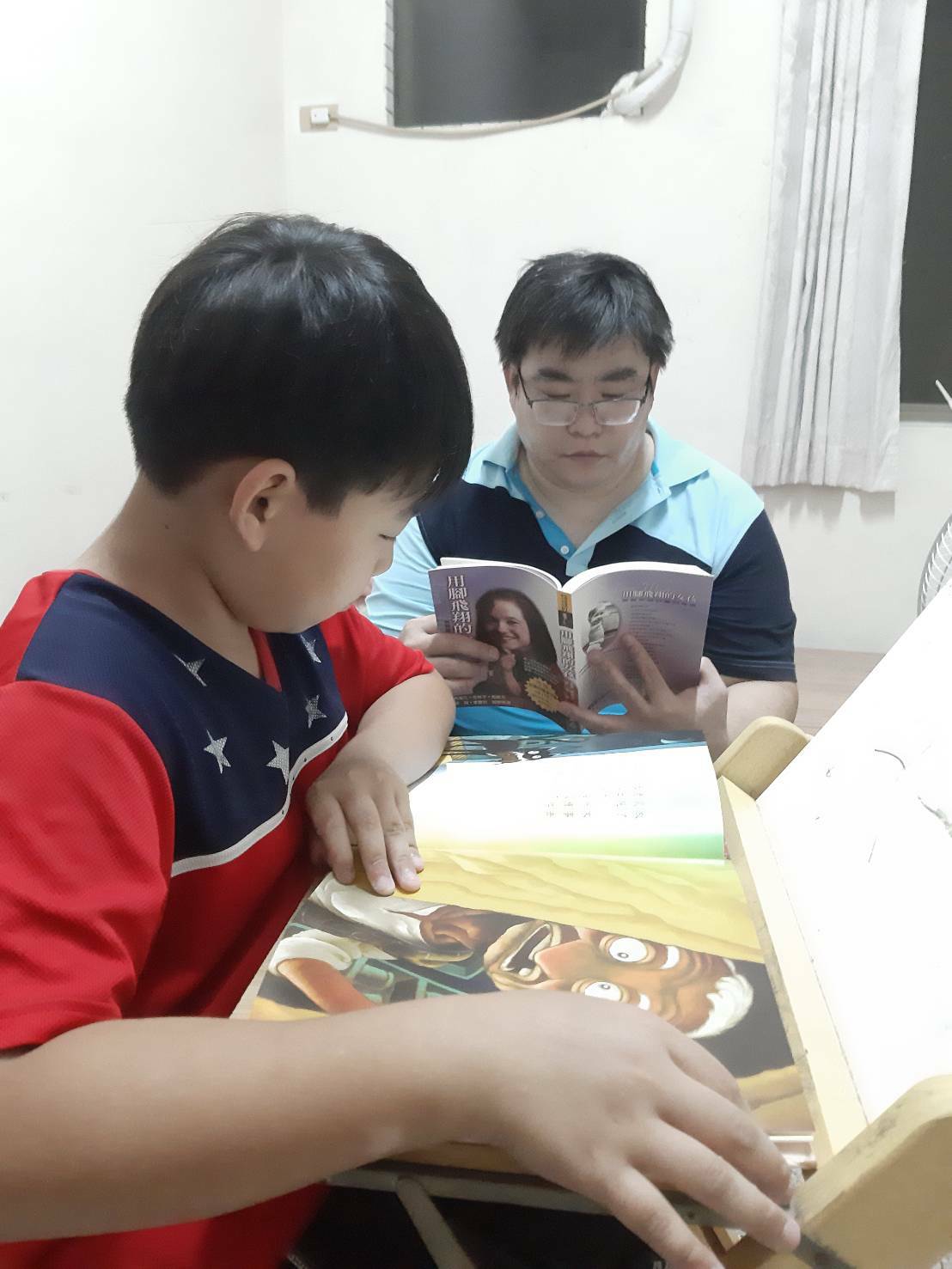 8.身教重於言教,當老師拿著一本書坐在椅子上仔細閱讀時,學生自然會受到感染進而開始安靜閱讀,形成師生共讀的美好畫面,這也是更寮國小重視閱讀的一部分。