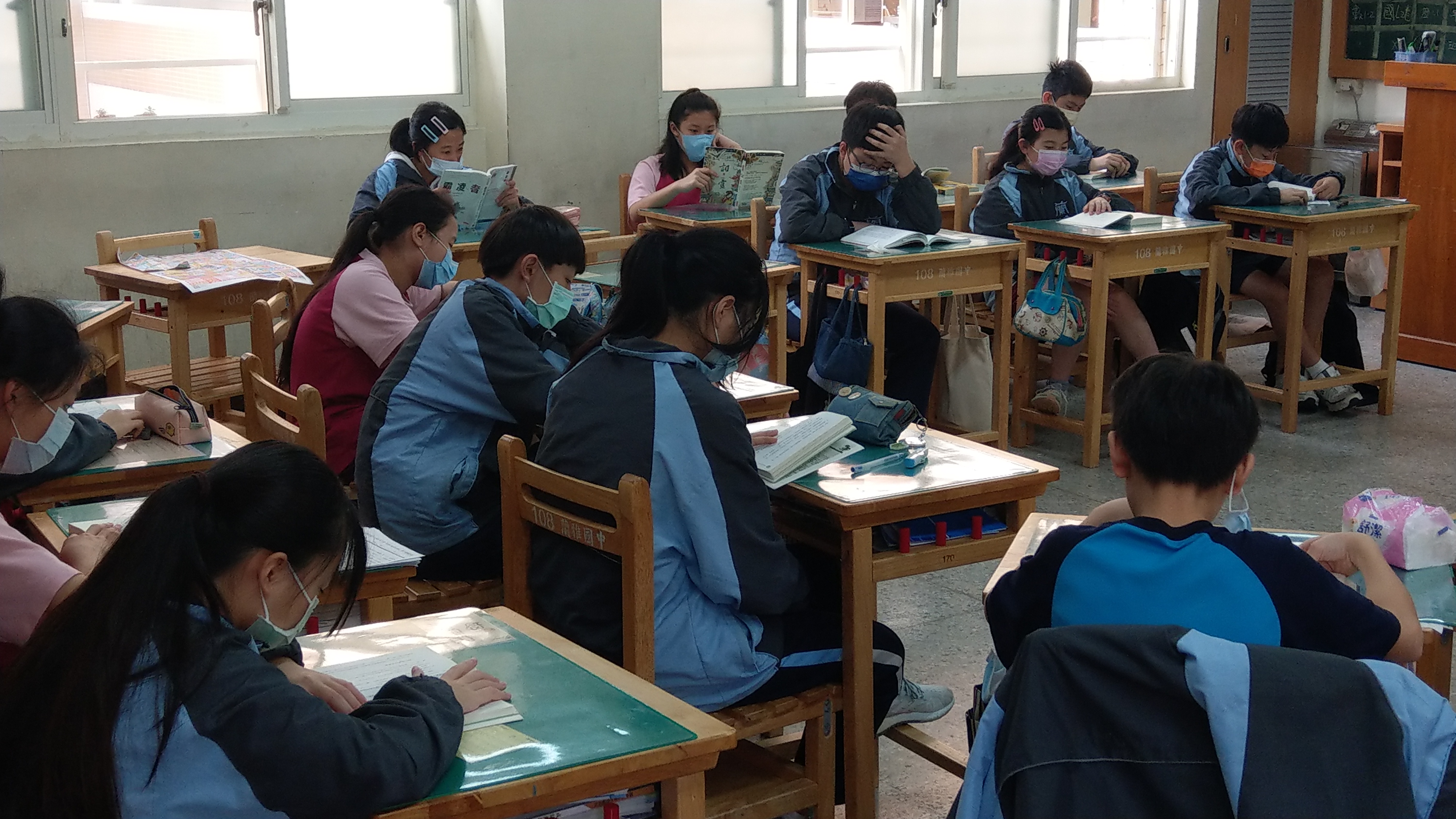 4.師長共讀:校長領導各行政教師與各班導師一起入班共讀,並在晨讀最後五分鐘會與共讀學生分享所閱讀的書籍,在分享之中融合全球議題,以有獎徵答獎勵學生,進而激發學生的閱讀動機,培養閱讀習慣。