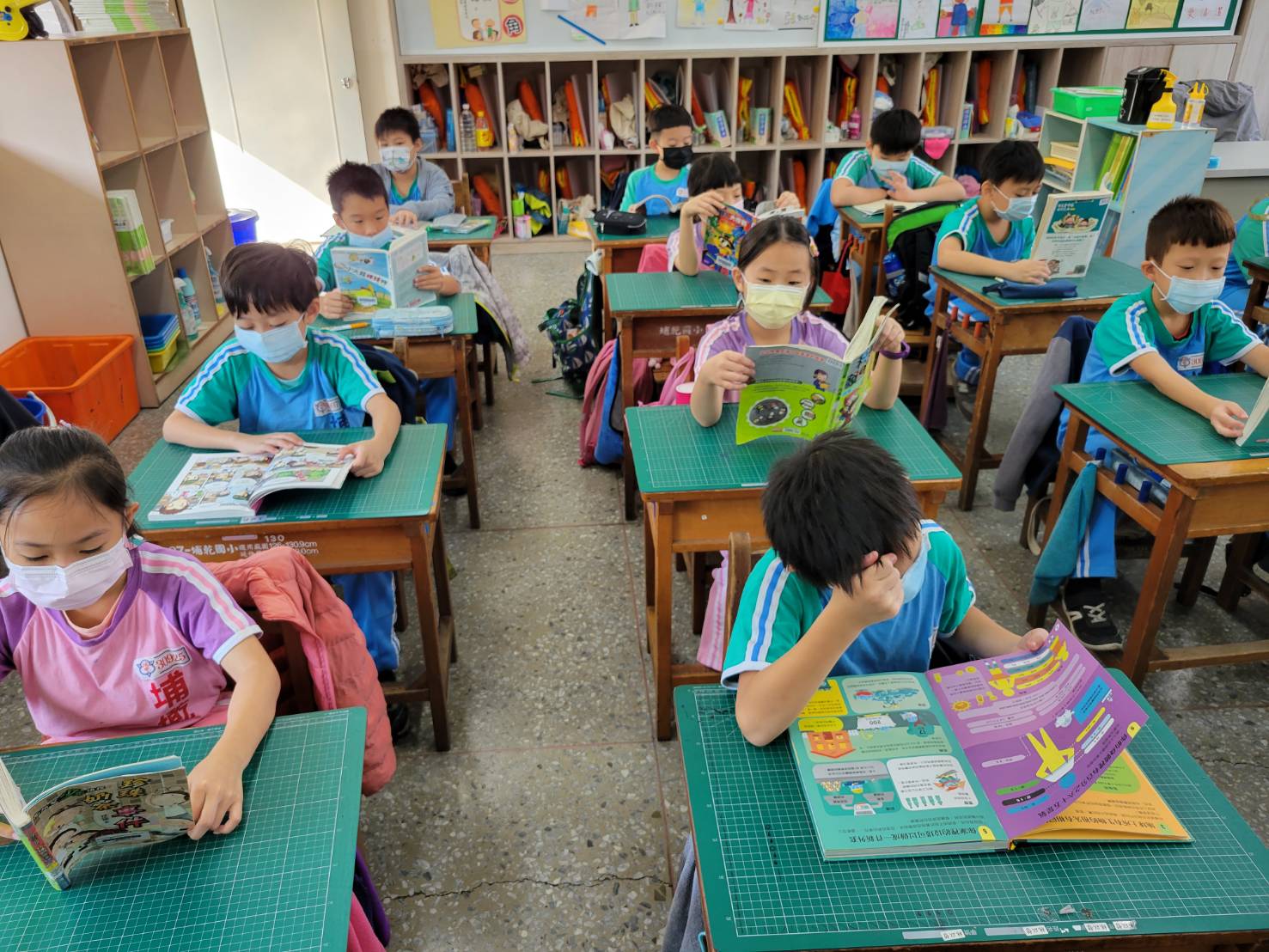 4. 每週四早自習為全校晨間共讀的時間,配合多元的閱讀素材,讓學生沉浸在閱讀的氛圍中。