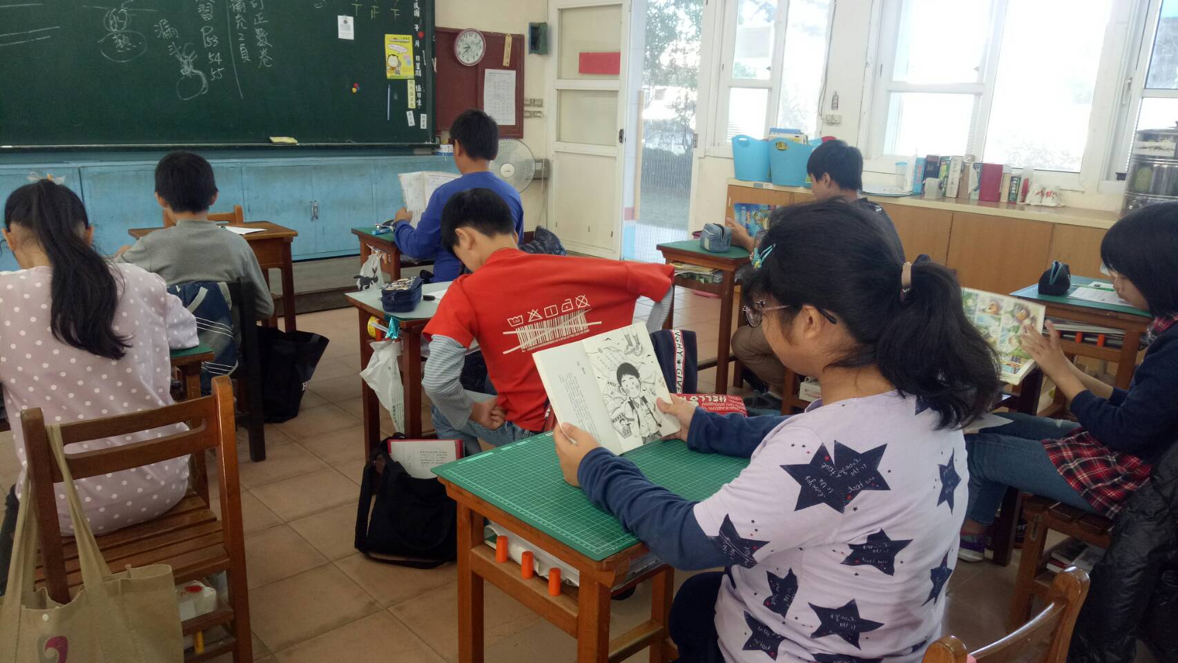 本校為增強學生的語文閱讀能力,持續推動閱讀教育,對學生語文學習投入不遺餘力;自105學年度起,除了正式課程外,閱讀教育納入學校行事曆,每週一早上有退休教師志工來校帶領讀經時光;週三是故事劇場,師生一起分享閱讀故事並進行內容有獎徵答;週五晨光時間則為身教式沉浸式閱讀;週四的課間活動是固定的全校借書時間;每月並辦理讀報教育,在寒假則有學生閱讀營;108學年度上學期的學生借閱讀為全鄉之冠。同時也鼓勵學生進行童詩寫作及投稿,三年來,多則優秀作品分別獲國語日報刊登及入選本縣的小夢花文學獎。一年四期的校刊也收錄學生優秀分享作品,讓家長能看到孩子的學習成長。