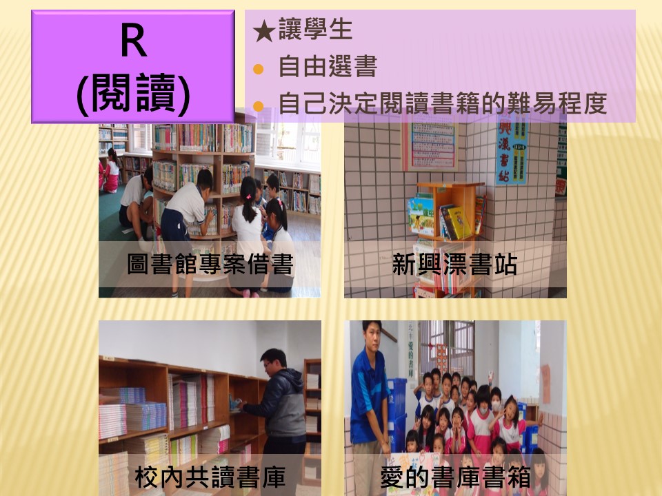 閱讀力是一切學科養成的基礎,更是孩子帶得走的能力。因此,除了規劃辦理各項閱讀教育之外,培養有自信、能尊重、會創新的新興兒童。亦申請閱讀亮點學校,成立新興小語教師共同備課社群,推動班級共讀書箱、MSSR閱讀書箱、經典教育書箱及全校身教式持續性寧靜閱讀(MSSR),搭配書香學制及閱讀存摺,每一位學生畢業前需至少閱讀200本書籍,完成閱讀力認證。