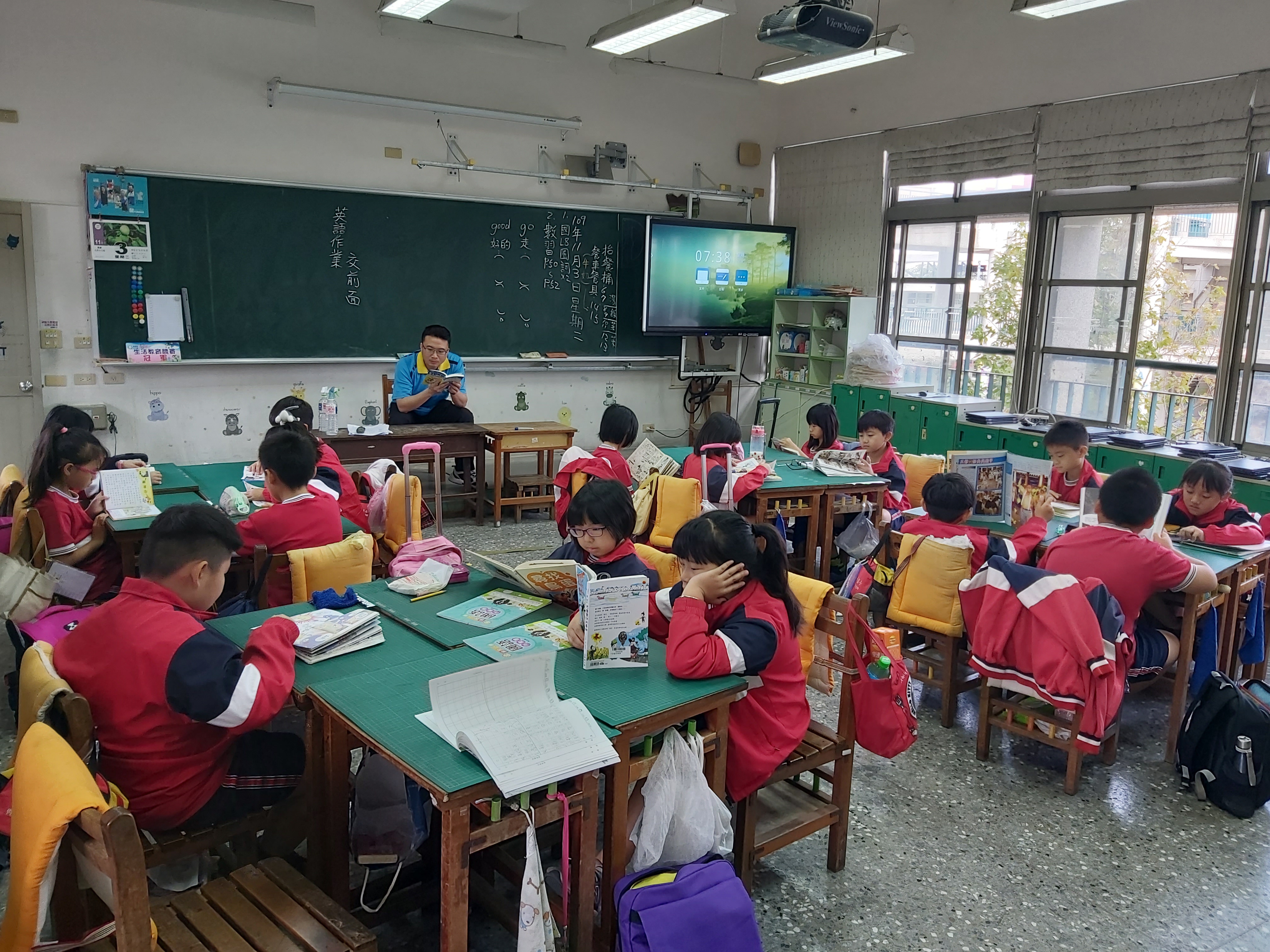 每週一~週五,早上7:30至7:40晨讀10分鐘,導師陪同小朋友一起靜心閱讀,校長及主任輪流至各班伴讀