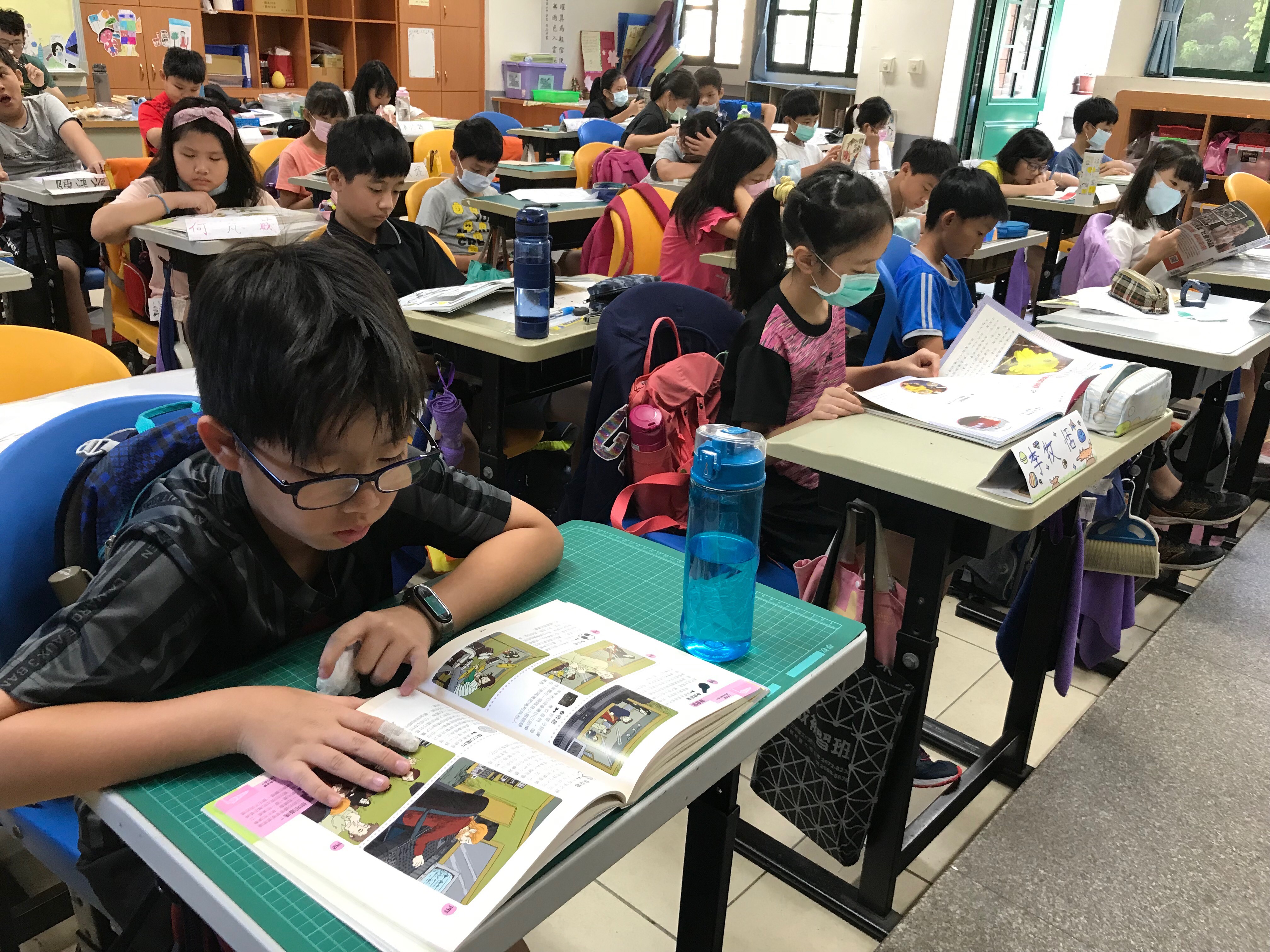 4.每週三規劃為全校無聲共讀時間,讓孩子能盡情的徜徉於書海當中。