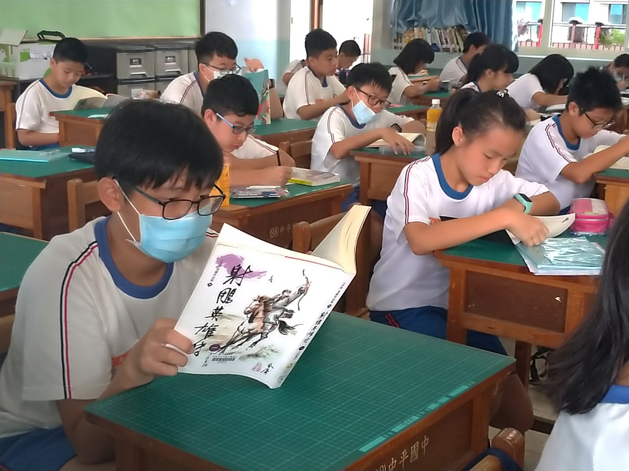 一,閱讀晨之美:各班學生利用早自習閱讀班級書箱、班級書櫃或好讀周報等素材,搭配優美音樂,給予學生早晨閱讀課外書籍的美好氛圍。並鼓勵各班能持續晨讀20分鐘以上。