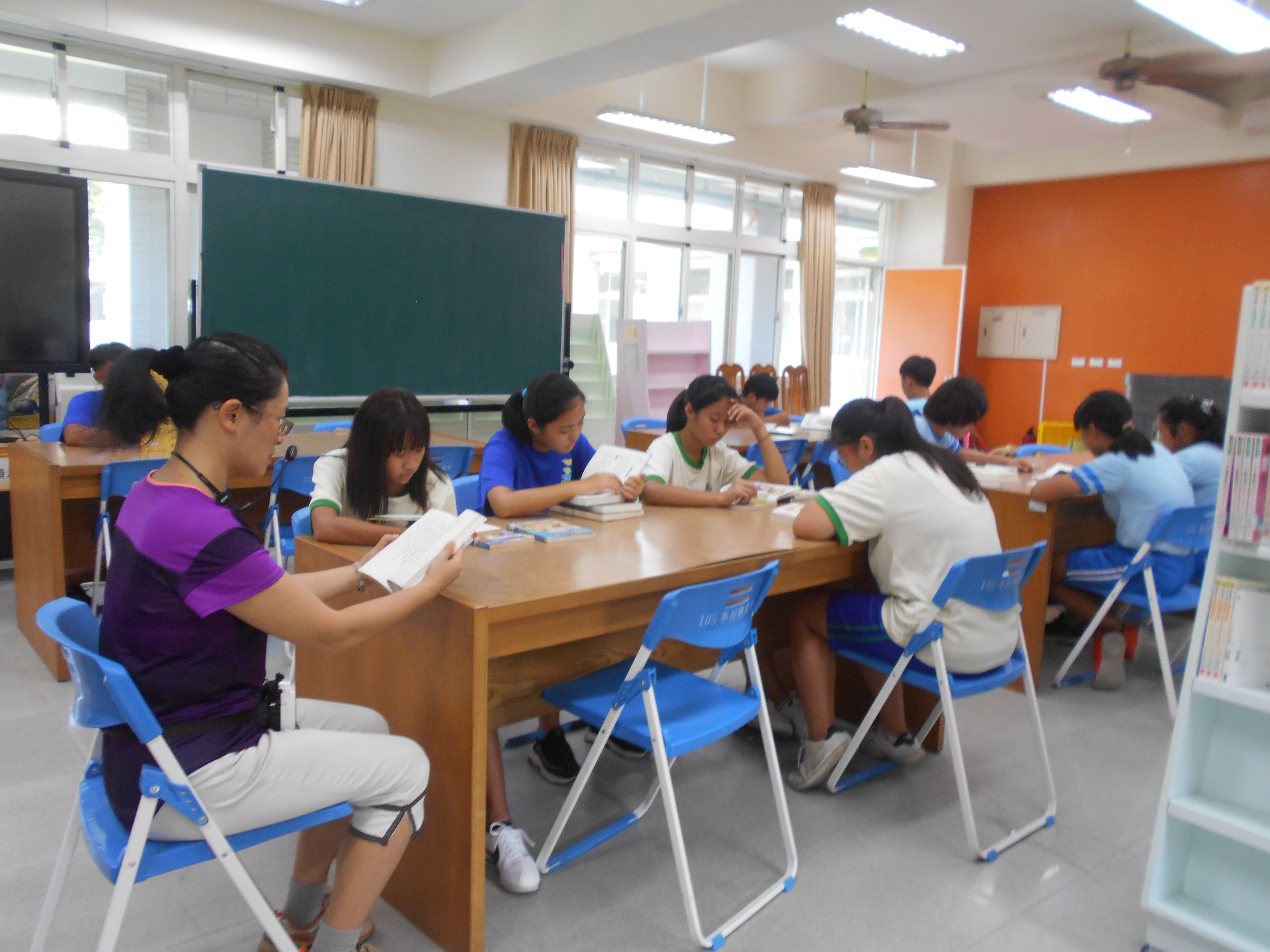 班上設置行動書櫃,讓孩子隨時隨地都可以享受浸潤式的閱讀環境。每班訂閱中學生國語周報,導師引導鼓勵孩子將讀報心得分享於聯絡簿上、課堂上發表,增進口語表達能力,更能增加孩子閱讀深度,與國際視野接軌。申請雲水書車到校服務,師生一起在清幽的校園中享受閱讀洗禮。全天候圖書館開放,讓孩子隨時可以閱讀,老師們則在課程中延伸每次閱讀主題,介紹不同閱讀文本,讓學生進行大量閱讀,培養終身閱讀習慣。