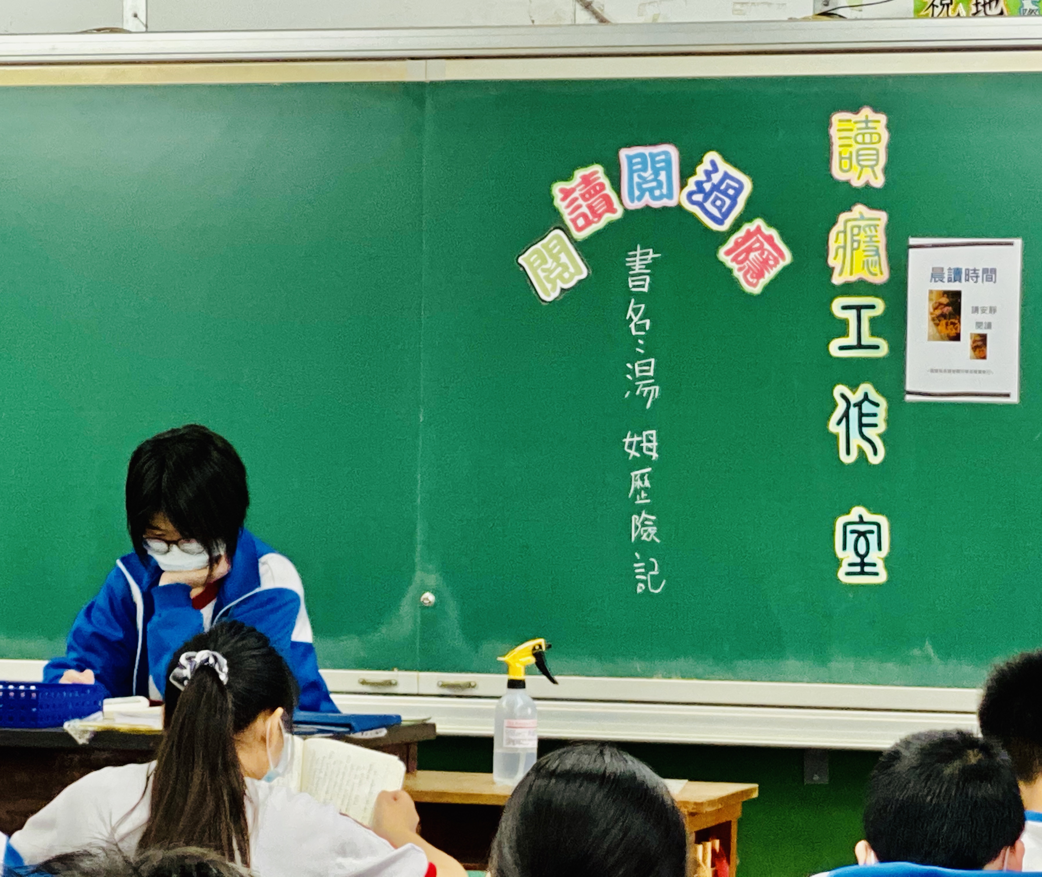 九月一開學,王裕德校長就以行動支持,將教育部贈書贈與國一新生,開始扎根閱讀之苗芽;而圖書館志工也仔細盤點班級書箱,分為三階段讓國中各班學生抬回班上,每周二由導師陪伴進行美好的晨讀時光,而此書籍也是一週一堂的彈性課程“悅讀游藝思”的教材。國中國文老師楊彩鳳…等組成社群,全心全意規劃、設計學習單,引導學生咀嚼課外讀物的英華,或者設計快問快答吸收知識,甚至帶領學生戶外教學,親身體驗實作。這群孜孜矻矻吸收閱讀讀養分的小樹,及辛勤灌溉師長的身影,在熹光中,在課堂間,閃閃動人。即使已經如此矜實,我們仍深怕孩子們錯過書籍深意,圖書館實施線上閱讀認證,讓每一次的閱讀都得以立即檢驗成果。
