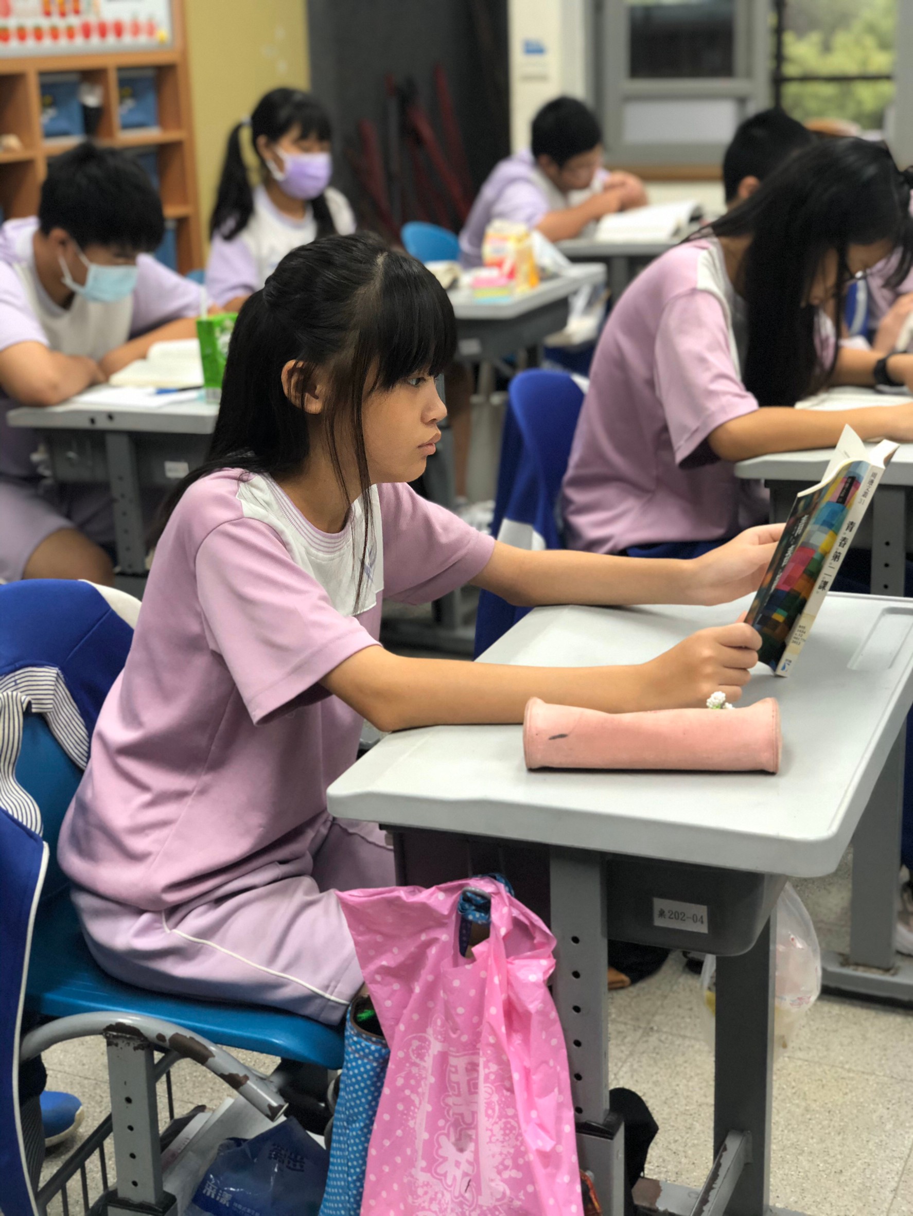 本校推動晨讀已有7年多,目前於國中部中一中二班級實施。平時多為各班自由閱讀,本學期搭配政府新生贈書活動,由校長贈與中一新生每人一本新書,作為本學期晨讀的開始,每學期也會配發班級書箱至各班,提供同學們晨讀素材的另一選擇。