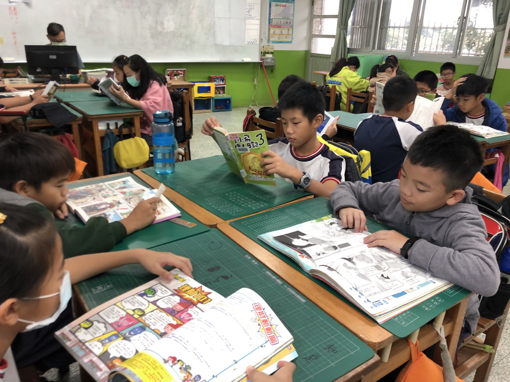 本校實施晨讀活動多年,從早年的「晨讀十分鐘」開始推行,學生一早進到學校繳交完作業,便會拿出自己最喜歡看的書安靜的閱讀,所以每天一早的晨讀時間,校園是相當靜謐的,且不僅學生,連同全校老師也都一起閱讀,透過多年的晨讀,學生早已養成閱讀的習慣,本校學生在大量閱讀的基礎下,寫作能力也大大提升,對外參加各報章雜誌投稿,每學期都可以在20篇以上,也曾於102年參加天下雜誌【樂讀‧悅讀】計畫,甄選獲得全國「樂讀學校」殊榮。因為閱讀的扎根,高年級進行動畫創作時,孩子們也得以藉由各項能力的累積,延伸出另一個特色課程「動畫影像創作」,並對外參加影展獲得各項佳績,本校從MSSR開始,孩子逐步累積能量,站上成就舞台,帶動各項學習動能。
