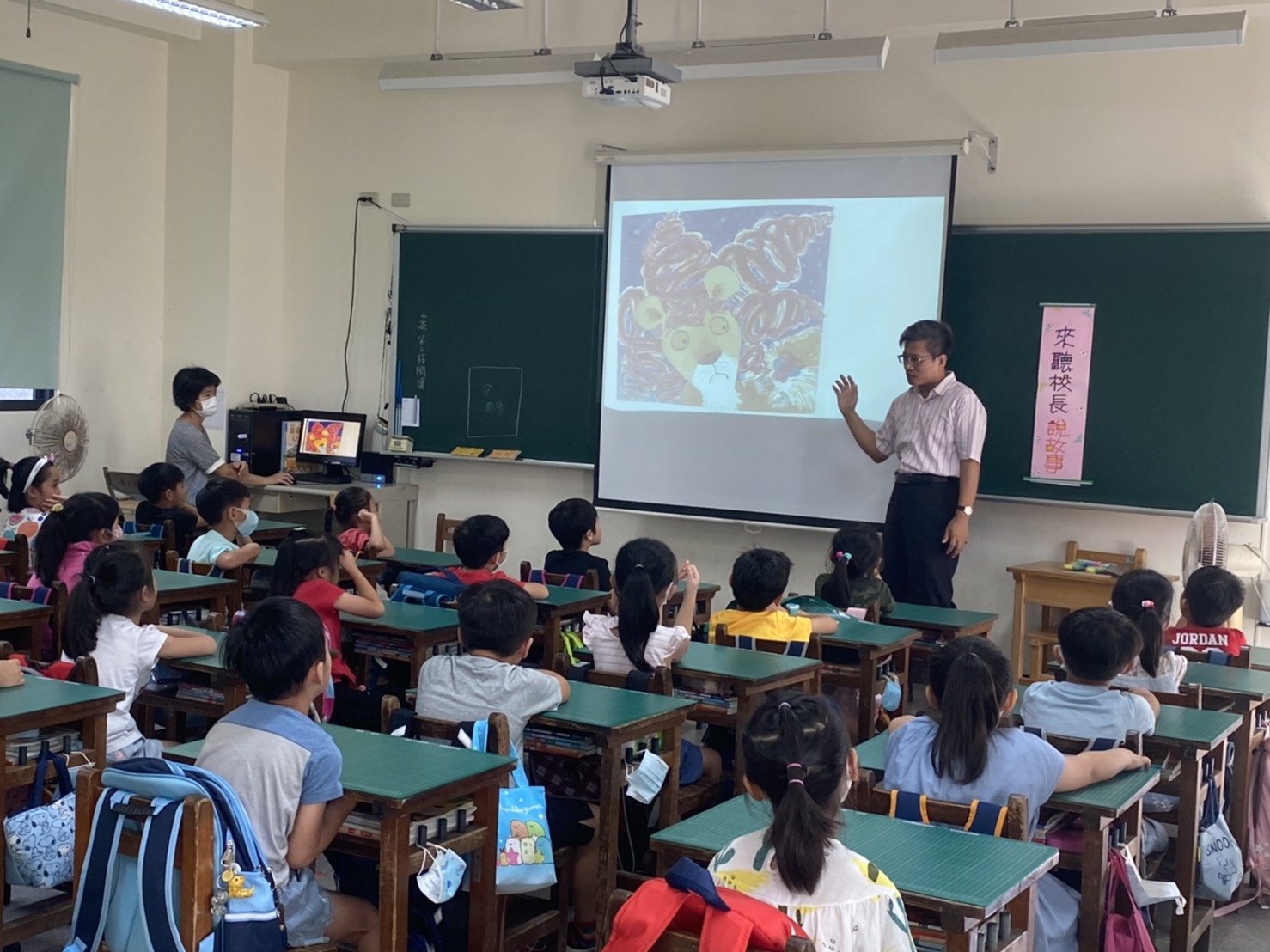 (五)校長說書---校長到班級與學生聊書,引導學生發現閱讀的美好。