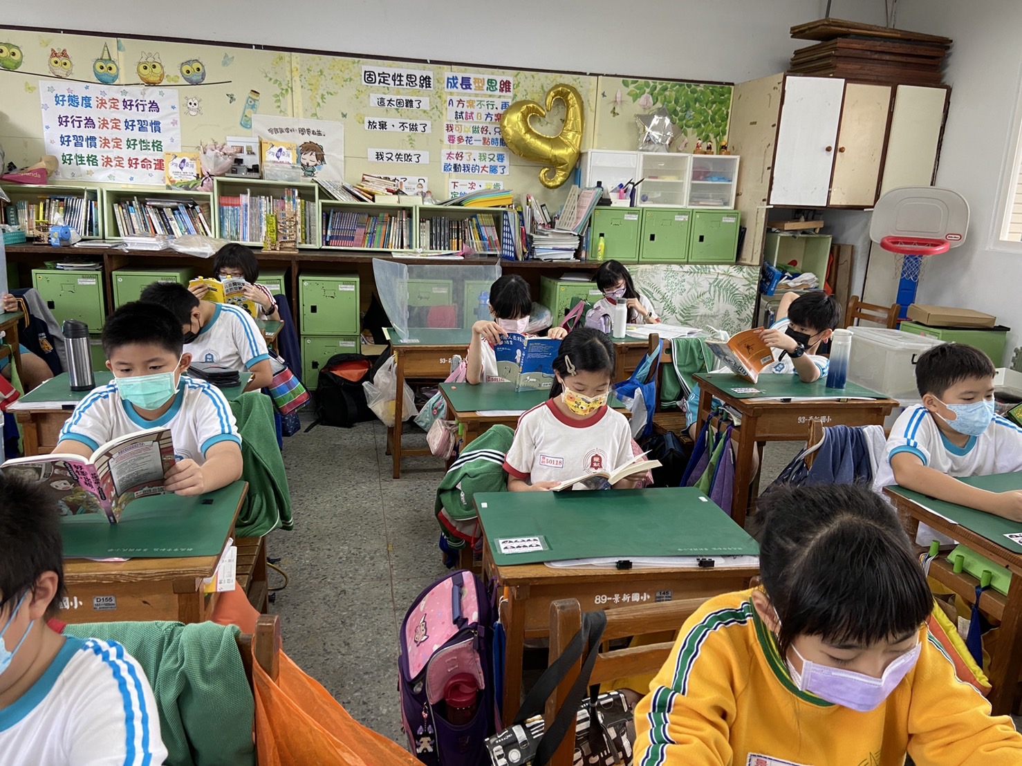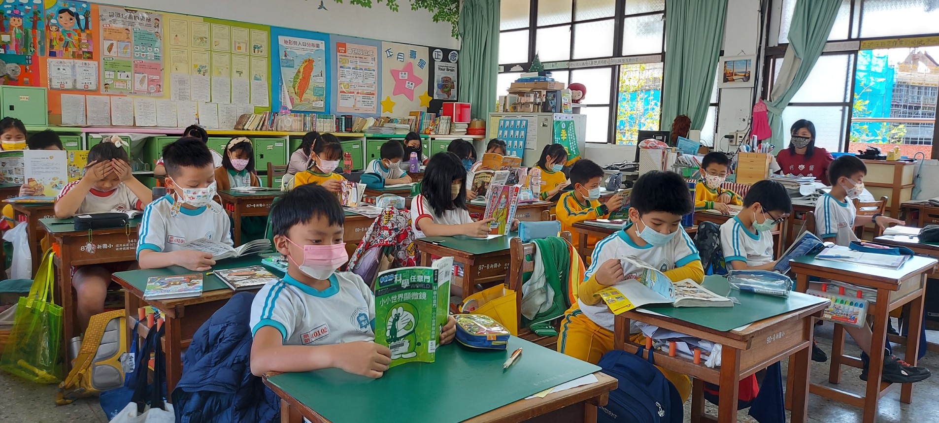 每週二次晨間閱讀,1人1本自選書,體驗閱讀樂趣。各班以閱讀圖書館班級書箱為主,書箱每個月輪替。教師會跟著學生一起享受書香,進行身教式閱讀,並鼓勵學生發表閱讀後的感想。教師也經常和學生聊書,啟發學生對書的興趣。