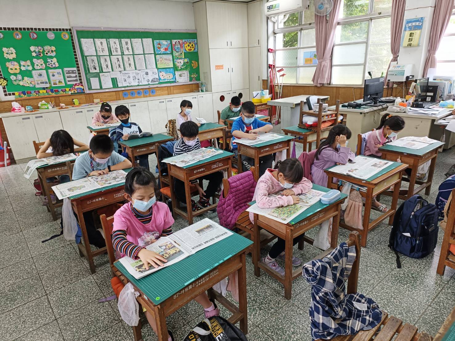 本校成立教師閱讀社群,社群領導老師於每週三晨光時間先帶領小小主播(由學生報名輪流)先廣播報告當週有趣或重要的新聞資訊,約2-3分鐘,之後再進行20分鐘的寧靜閱讀。孩子在各班老師的帶領下,師生均一起閱讀自己需要的、喜愛的書籍,沉浸於書本中的世界,達到樂讀、悅讀的目的。
