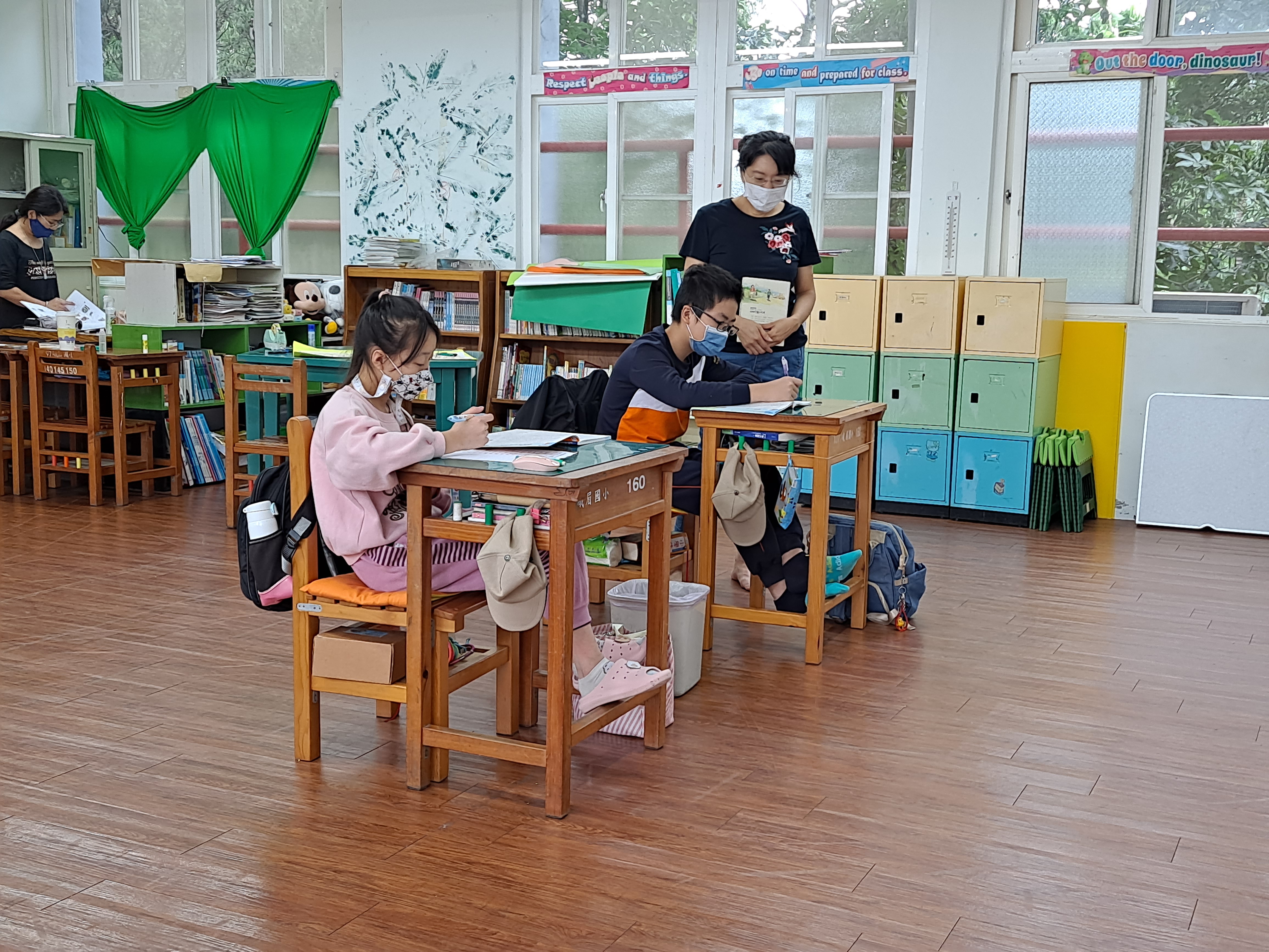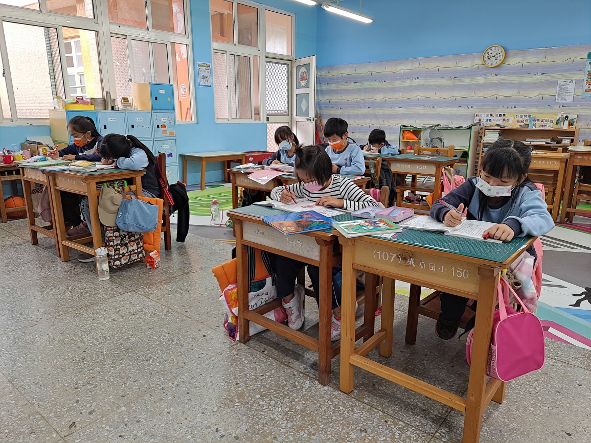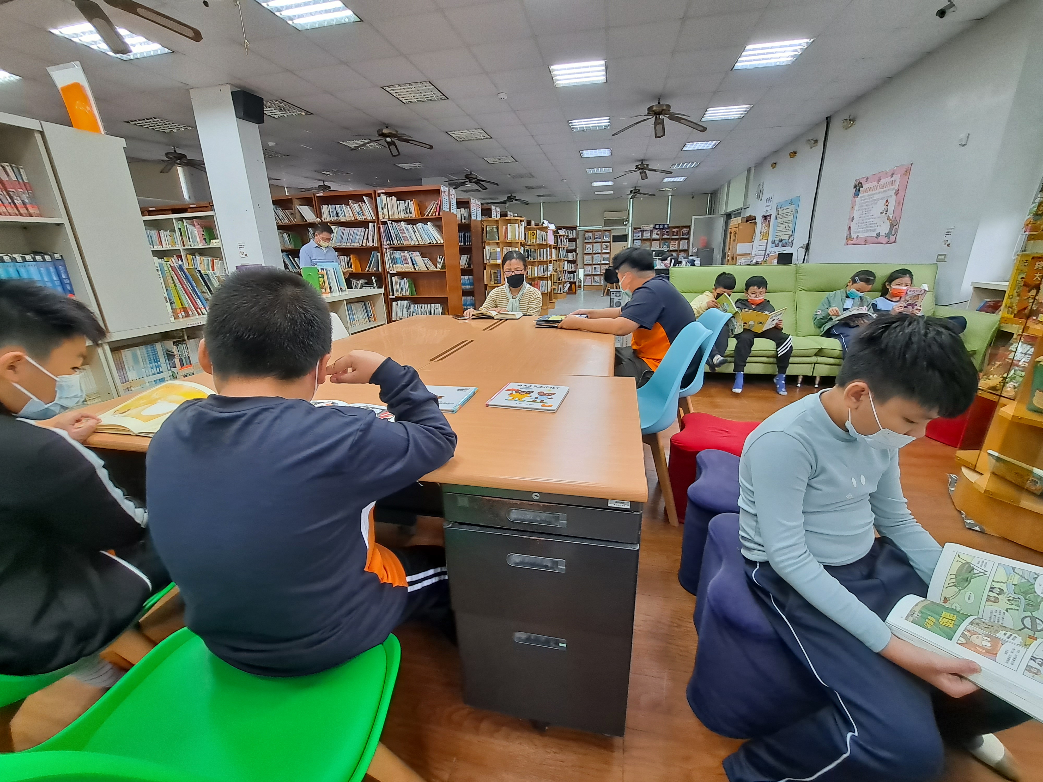 2.本校得天獨厚,鄉立圖書館位在校園內,校長和各班老師陪同孩子輪流到鄉圖書館進行晨讀。