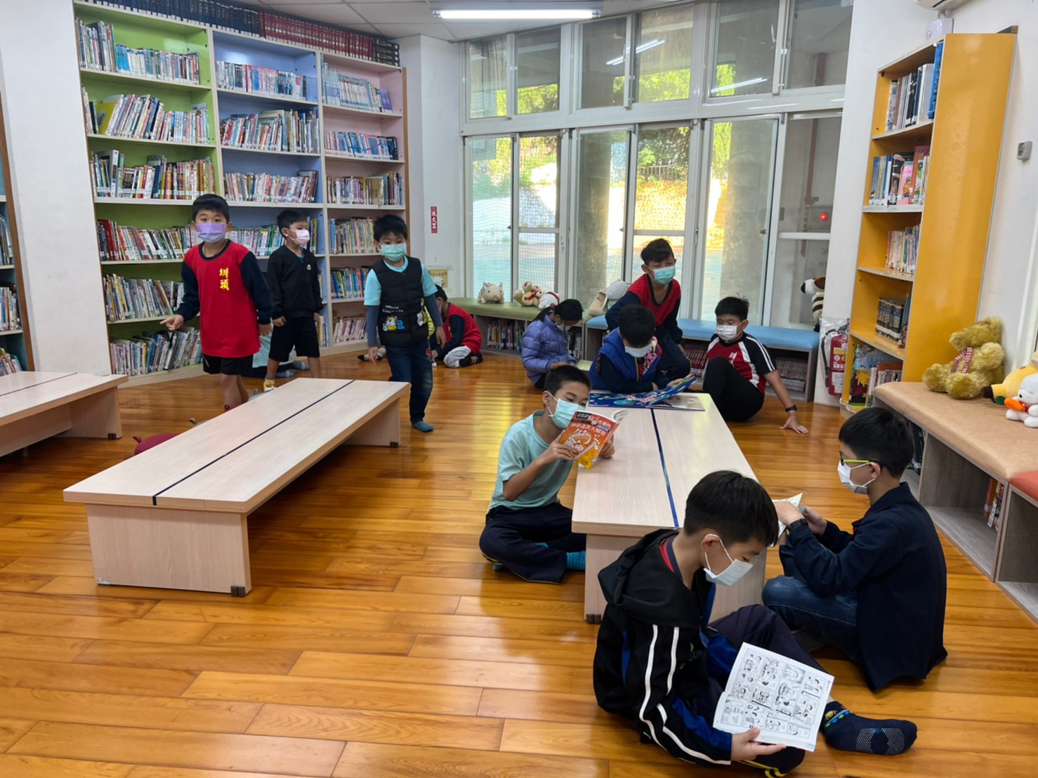 1.每天學生一到校,導護老師就會引導學生先到圖書室進行閱讀活動,到了7:30分才讓學生各自回教室進行晨間打掃活動。