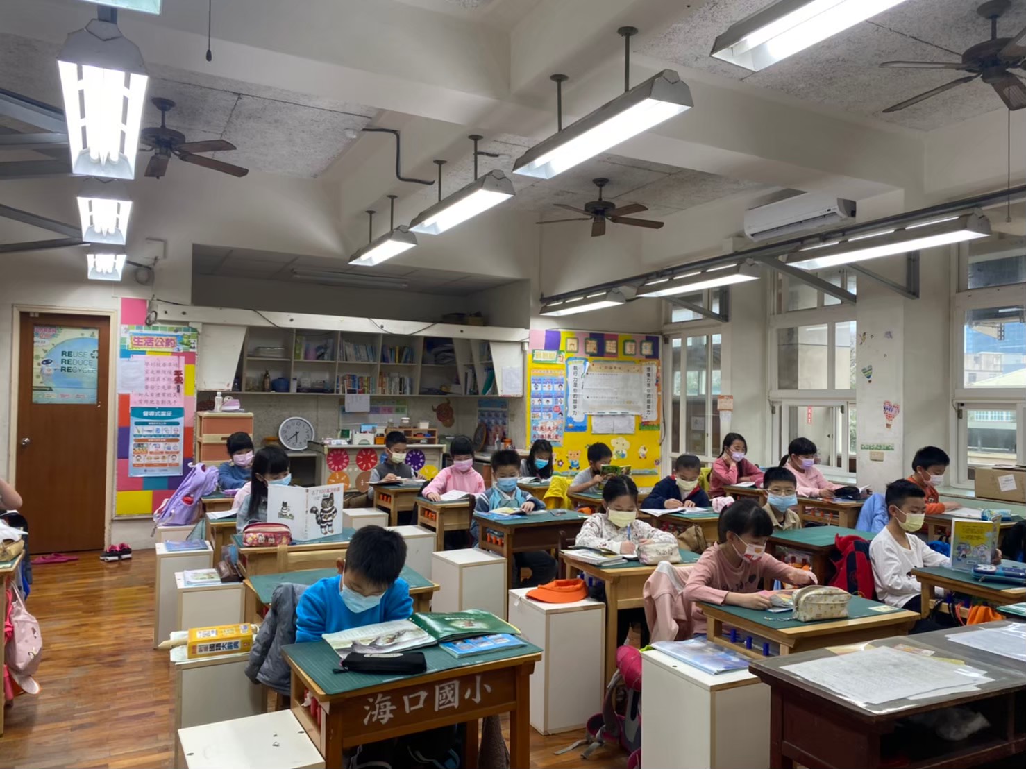 海口國小位於苗栗縣竹南鎮海口里,全校共21班,學生人數504人。學校加強品德教育,鼓勵孩子多元學習,尋找優勢智慧。並積極推動閱讀教育,提升學生閱讀素養;推廣校園閱讀風氣,培養兒童閱讀習慣,使其融入學習及生活脈絡中。圖書室有10為志工媽媽協助書籍借還,加速校內書籍流通速度,增加圖書室使用率,圖書室每學期定期舉辦2~3項主題閱讀相關活動,培養學生愛閱、悅讀及自主學習的習慣。