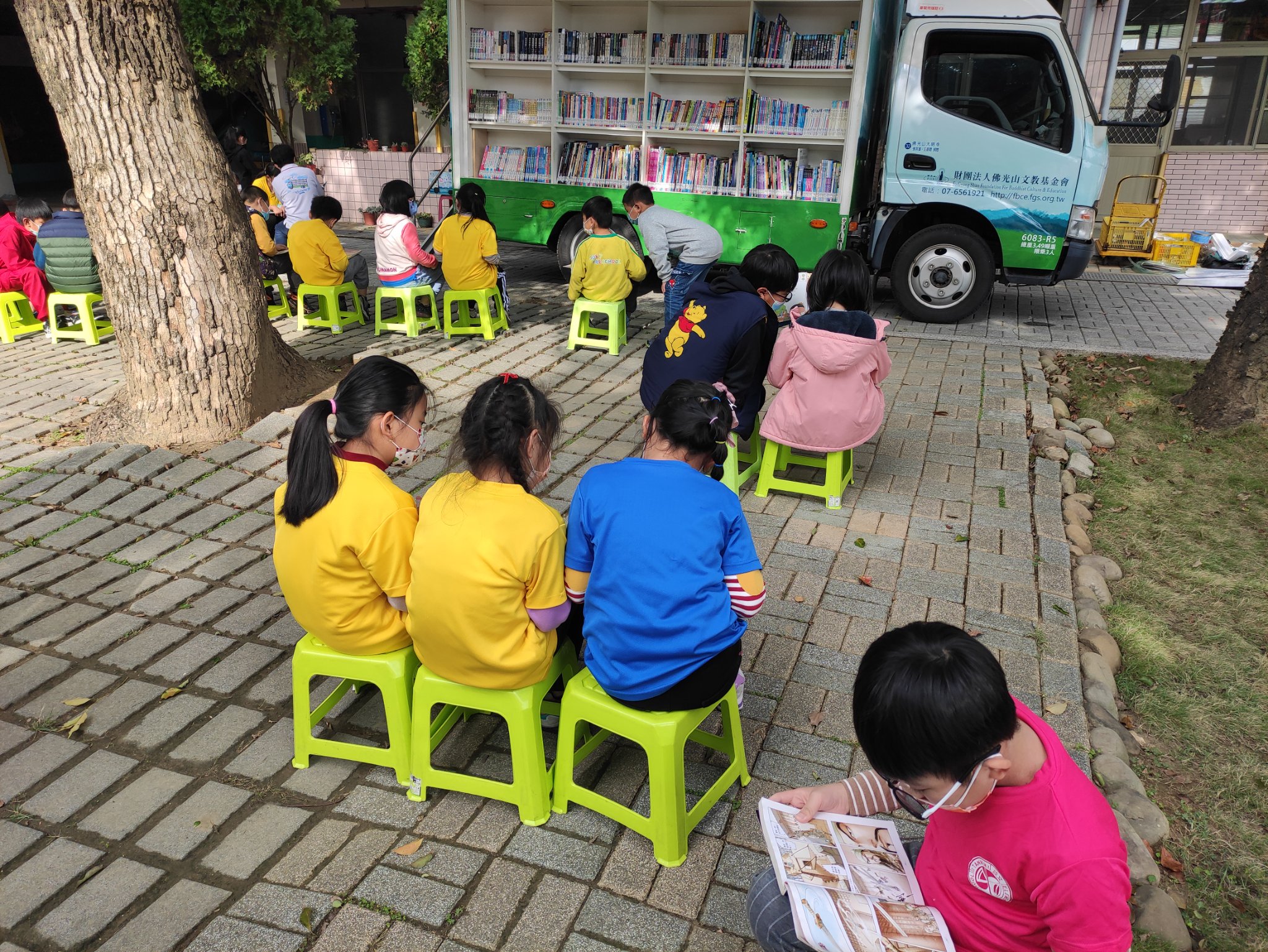 4.佛光山文教基金雲水書車每月到校,為孩子們提供提供戶外的閱讀饗宴。