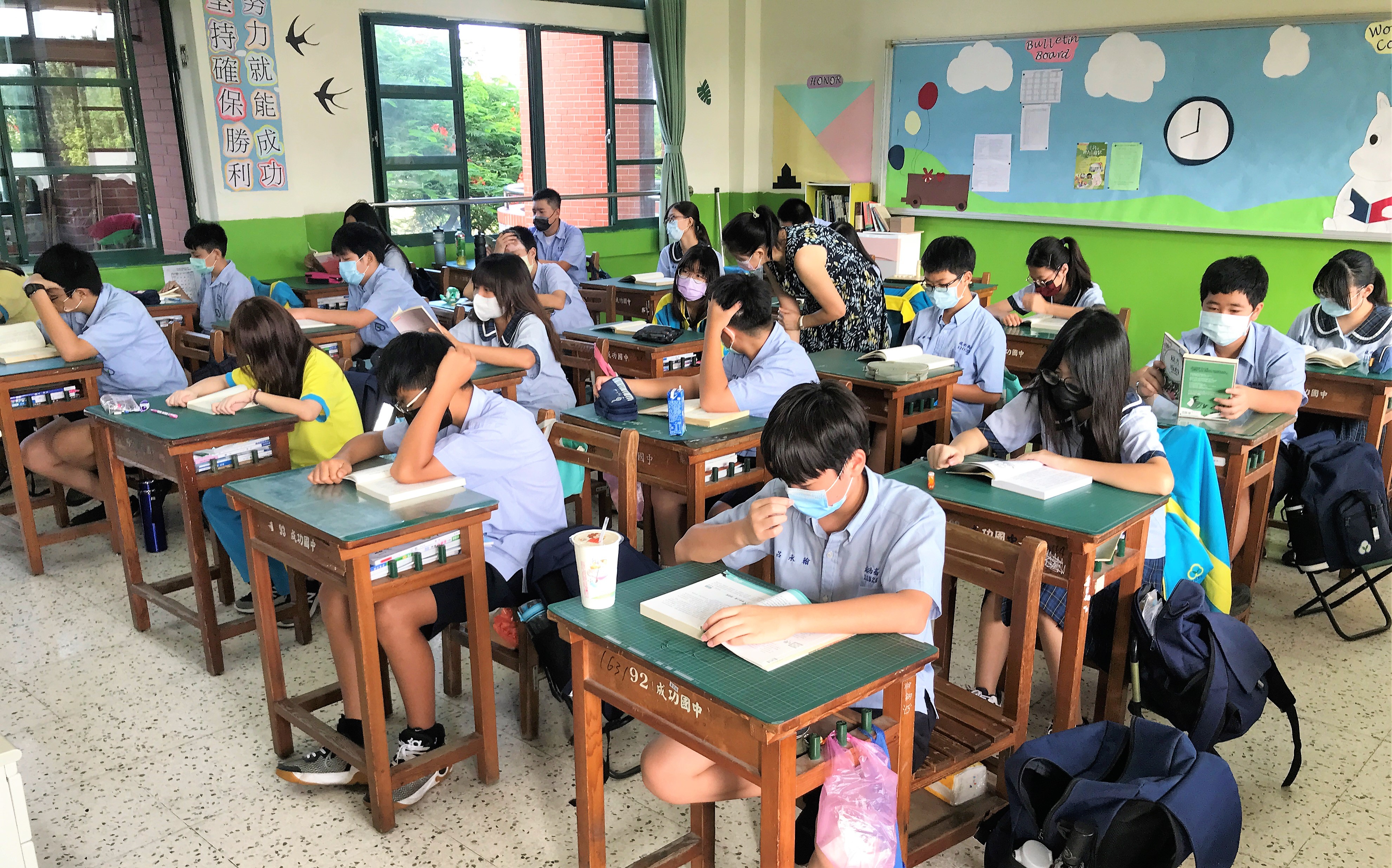 導師身教式持續安靜閱讀 (MSSR)的陪伴下,運用教育部新生贈書,彰化縣活水書庫共讀書箱、彰化縣讀報教育之好報進行晨讀,學生養成了靜心、靜讀、靜學的習慣,再以家長會印製之「成功閱讀護照」,讓學子將吸收之內容,轉化成文字表達出來。