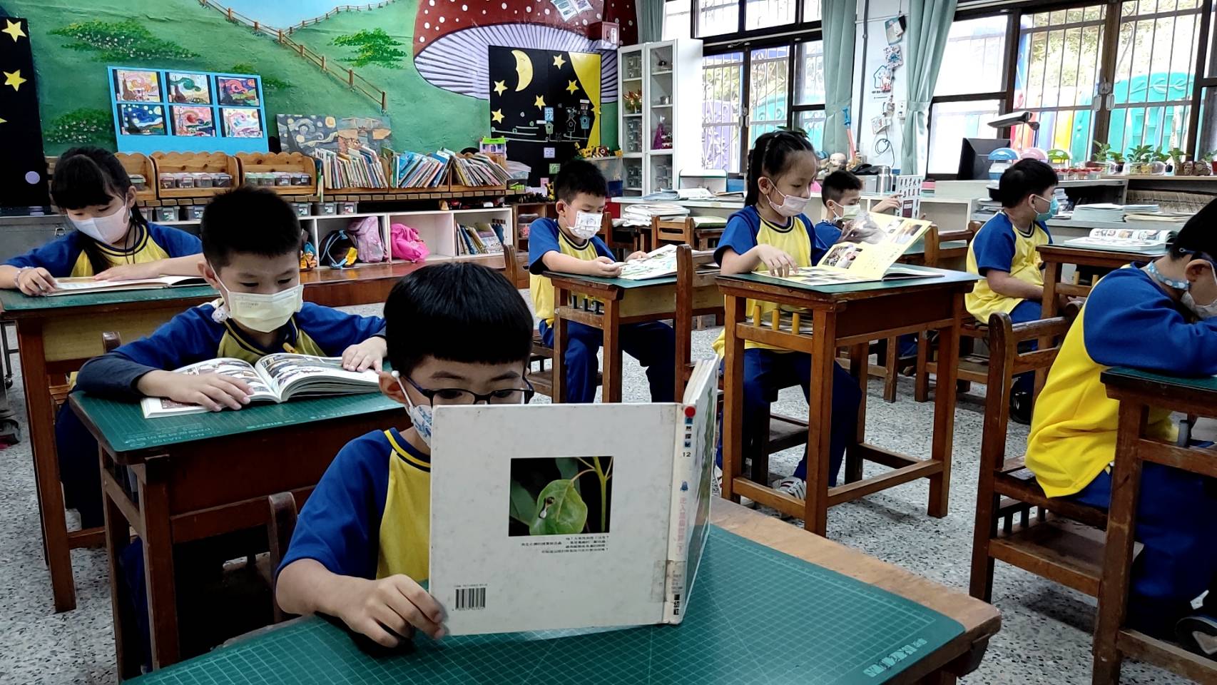建立年段班級書箱流轉於各班,並設定8:00─8:10晨讀鐘聲,規劃每週三、四、五晨光為學校共讀活動:每週一安排外師英文閱讀、中師指導學生使用ipad做酷英網閱讀活動;每週二晨光規劃小小讀報人,各班分組上台讀報、設計題目有獎徵答。本校亦參與「彰化縣閱讀認證系統」,並於圖書室及低年級班級書櫃,整理出可供認證的書籍櫃位,鼓勵師生上線進行閱讀認證。
