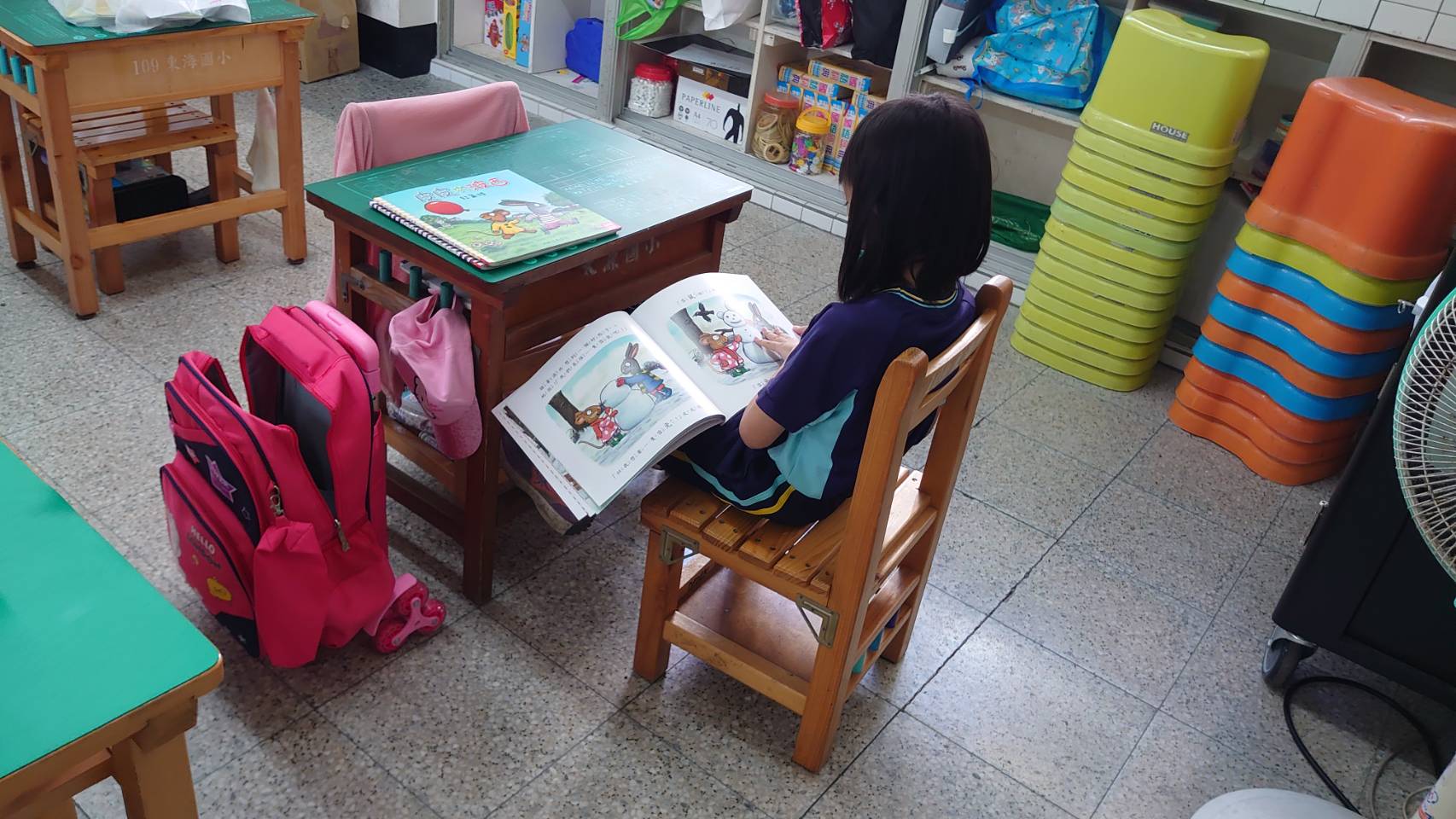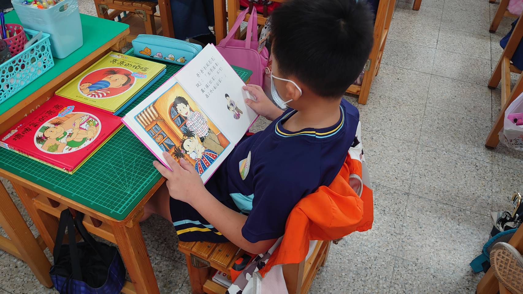 (2)教室裡有圖書櫃,有足夠圖書挑選。各班輪流進入圖書室閱讀,每週至少一次。