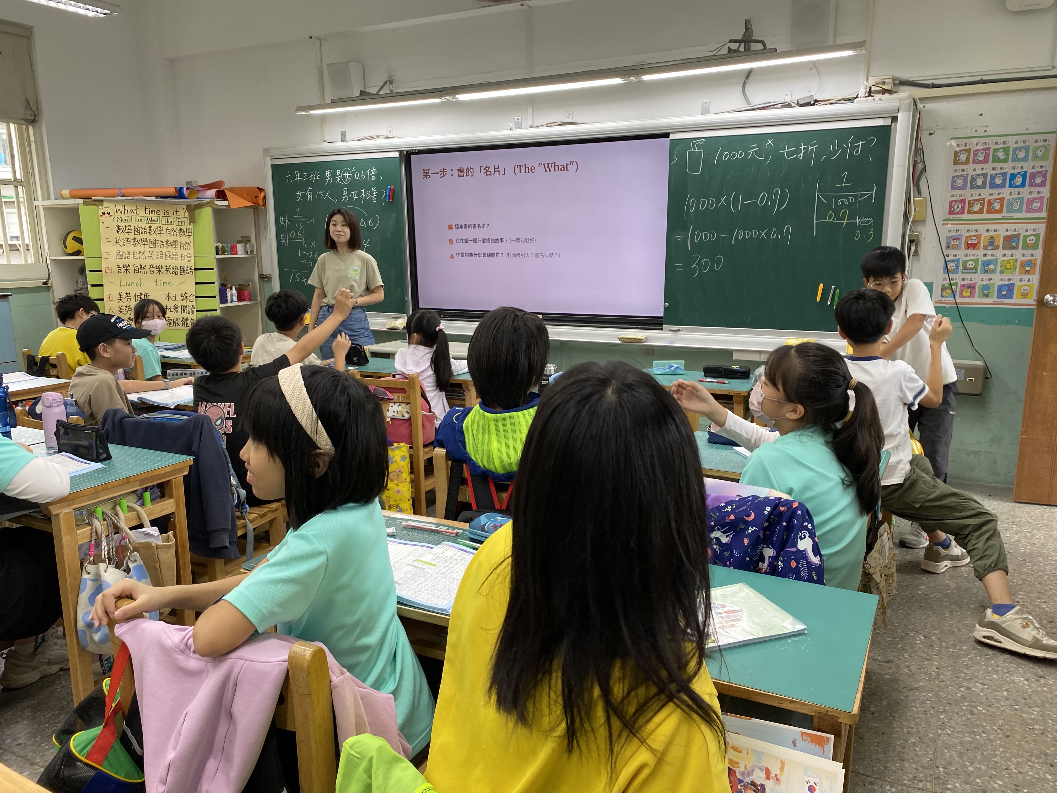 2. 駐校美籍外師說故事:學校安排駐校美籍外師每週一、四於English Corner 為自由參加的學校學生進行說書活動;每學期針對四~六年級入班2次為學生說故事;透過趣味化的英語繪本及動畫故事,增強了學生們對於英文繪本的喜愛及英語口說及聽讀能力。