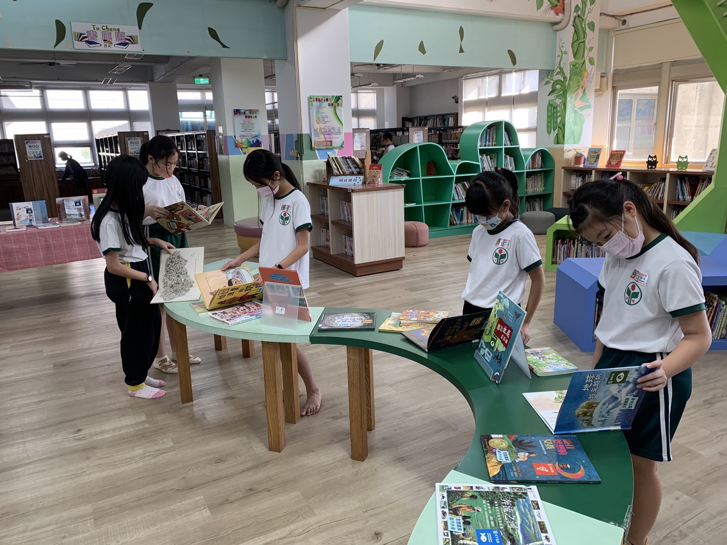 除了晨間閱讀外,每週安排入館閱讀,班班每週都有一節入館閱讀時間,學生可以自由取閱自己想看的書籍,坐在圖書館的一角,沉靜在書籍中。另每月的雲水書車,由志工說三好故事,讓良善品格深植孩子的心,微風帶來些許涼意,坐在穿堂, 找一本自己愛看的書,享受寧靜愉悅的氣氛