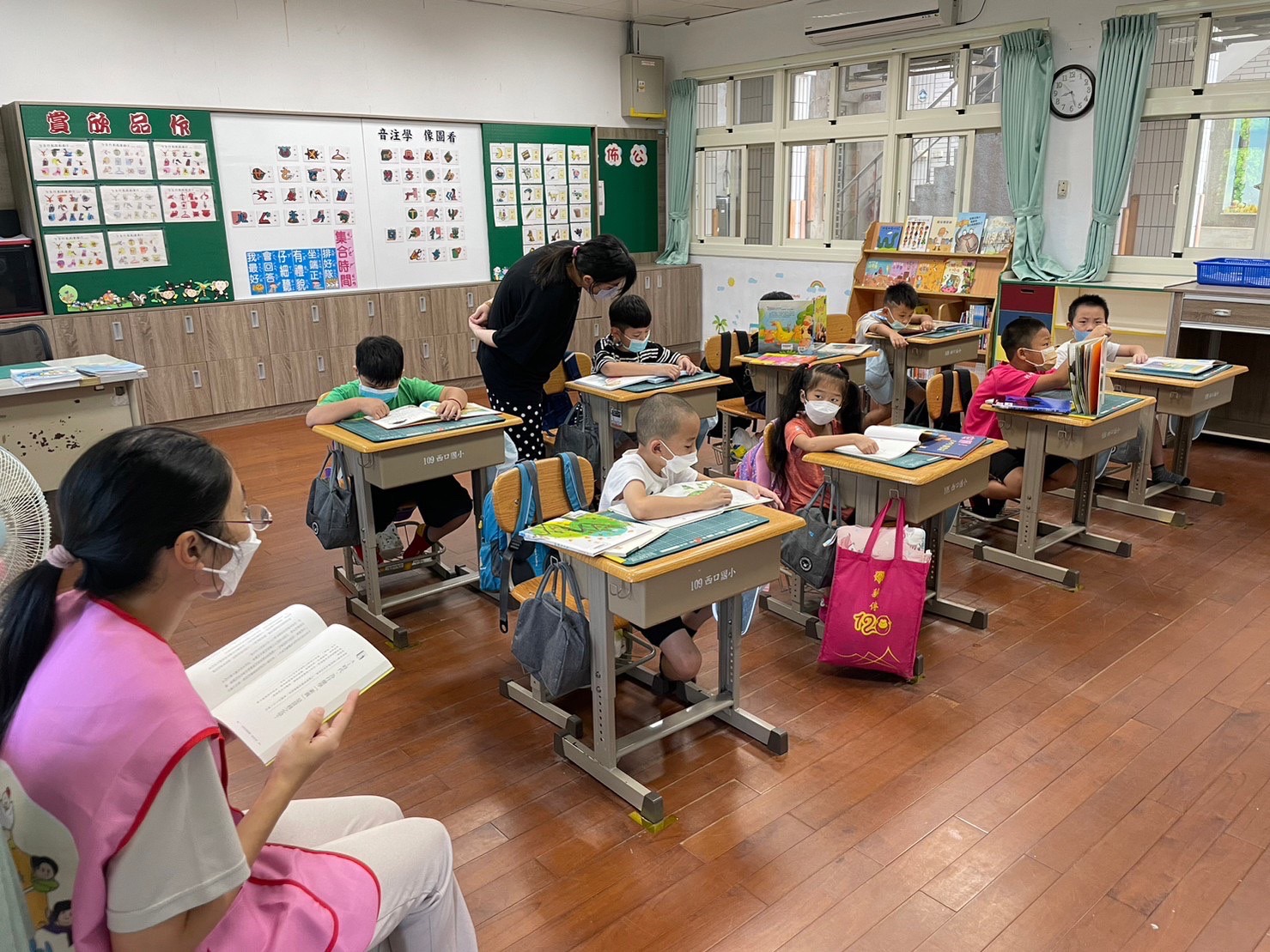 孩子喜愛閱讀,從中吸收知識、轉換到產出,教師實施跨領域「主題式閱讀」,融入行動載具輔助學習;孩子每週集會與師生「說書」,推薦喜愛的書籍;再結合語文和藝文領域專業師資,引導孩子們理解繪本、轉換思考並「創作小書」、「繪圖故事」!每學期各班孩子都有表演的機會,可以配合主題選擇繪本,或演出自行創作的故事,融入議題、寓教於樂!