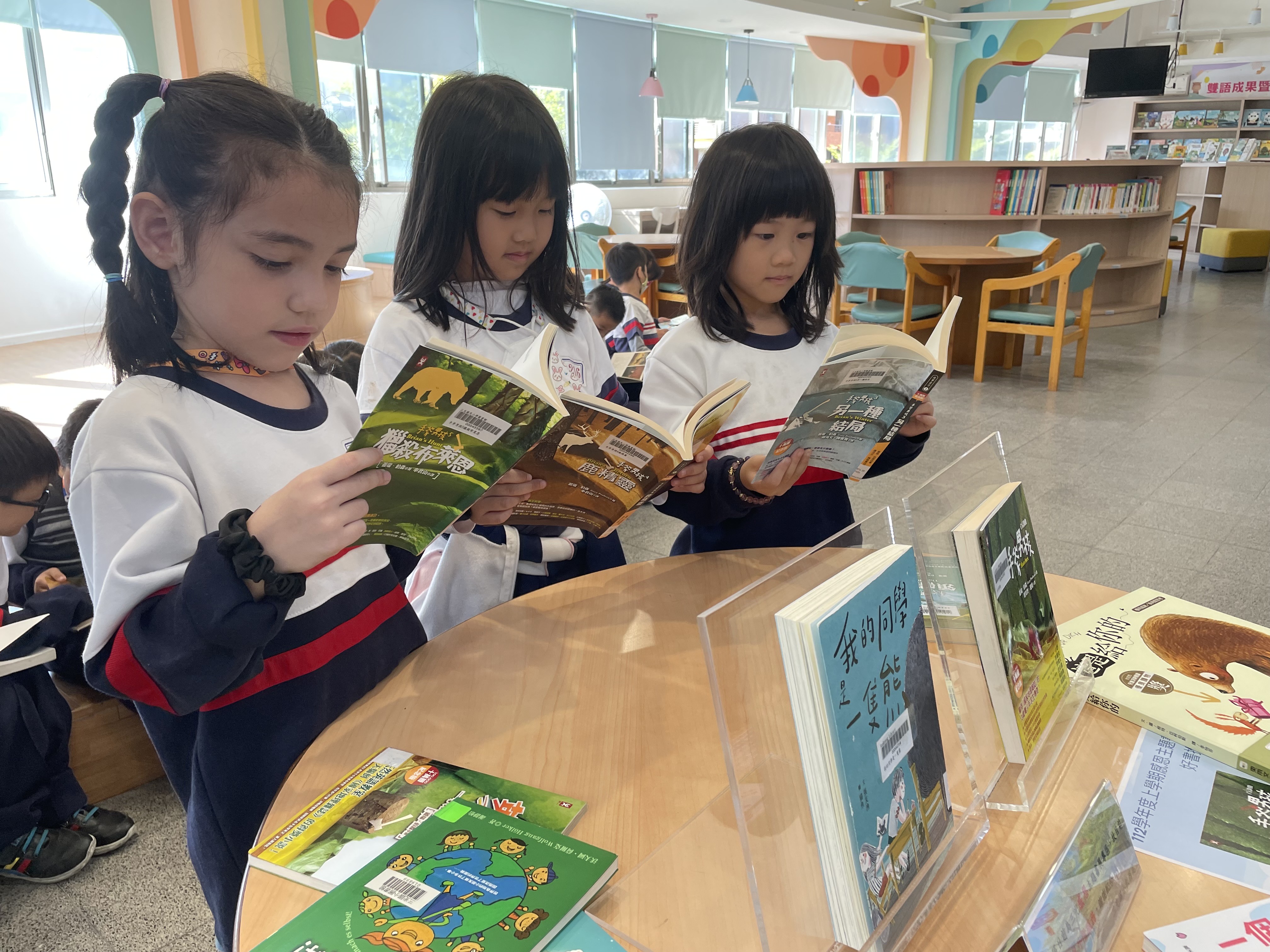 4. 設置英語圖書閱讀角與日常英語標語佈置,讓學生能沈浸式的學習。