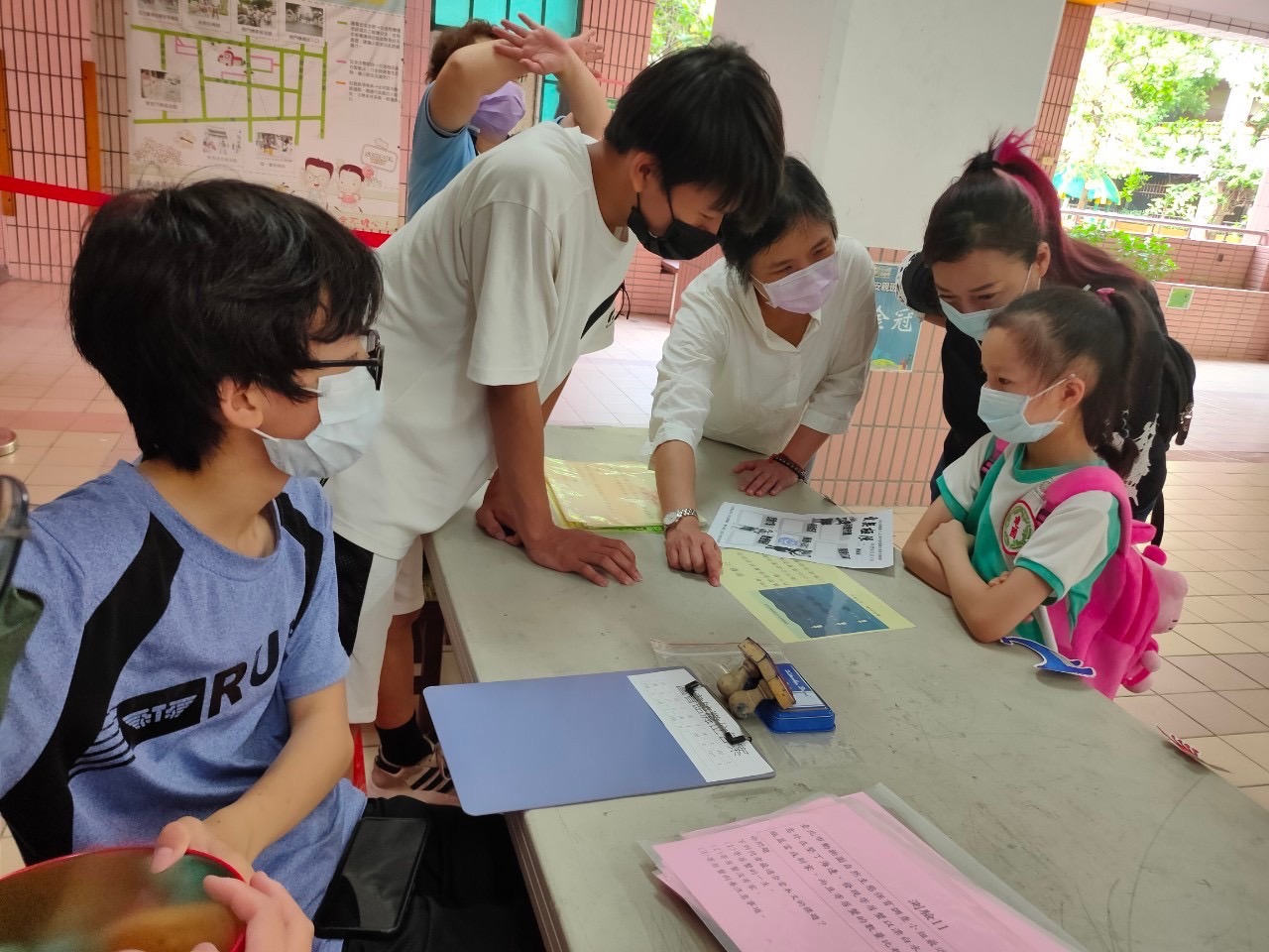 1.規劃及執行全校性之多元閱讀活動。利用週五晨間共讀時間,舉辦五、六年級對二年級「大手牽小手」繪本共讀活動。2.統整學校處室及各學習領域的教學資源,辦理全校閱讀活動。教務處閱讀大使藍胖胖,一起進行推廣圖書館主題書展,搭配輔導處「代間教育」徵文活動,進行好書共讀。3.於新生家長座談會時,舉辦親子閱讀講座,及推廣親子共讀活動。教師與新生家長討論如何幫助小朋友適應國小生活,而親子的繪本共讀就是很好的親子溝通媒介,再由圖書館負責推薦相關主題的好書。
