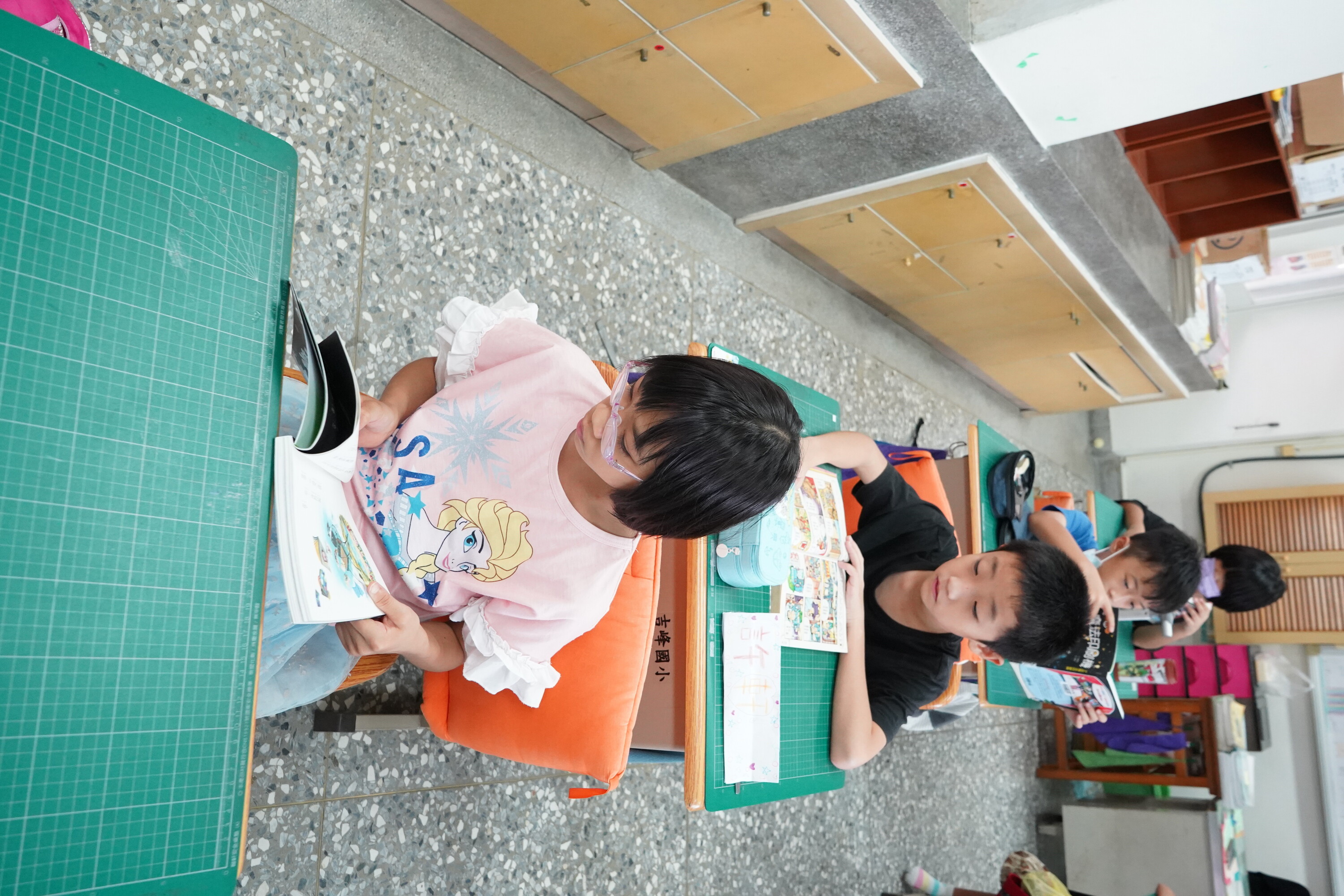 2.除了班級導師以身示範陪同閱讀之外,每個月的第一個週三,校長及行政、科任老師也全數走入班級,和班級學生一起共讀,並進一步薦書、聊書。