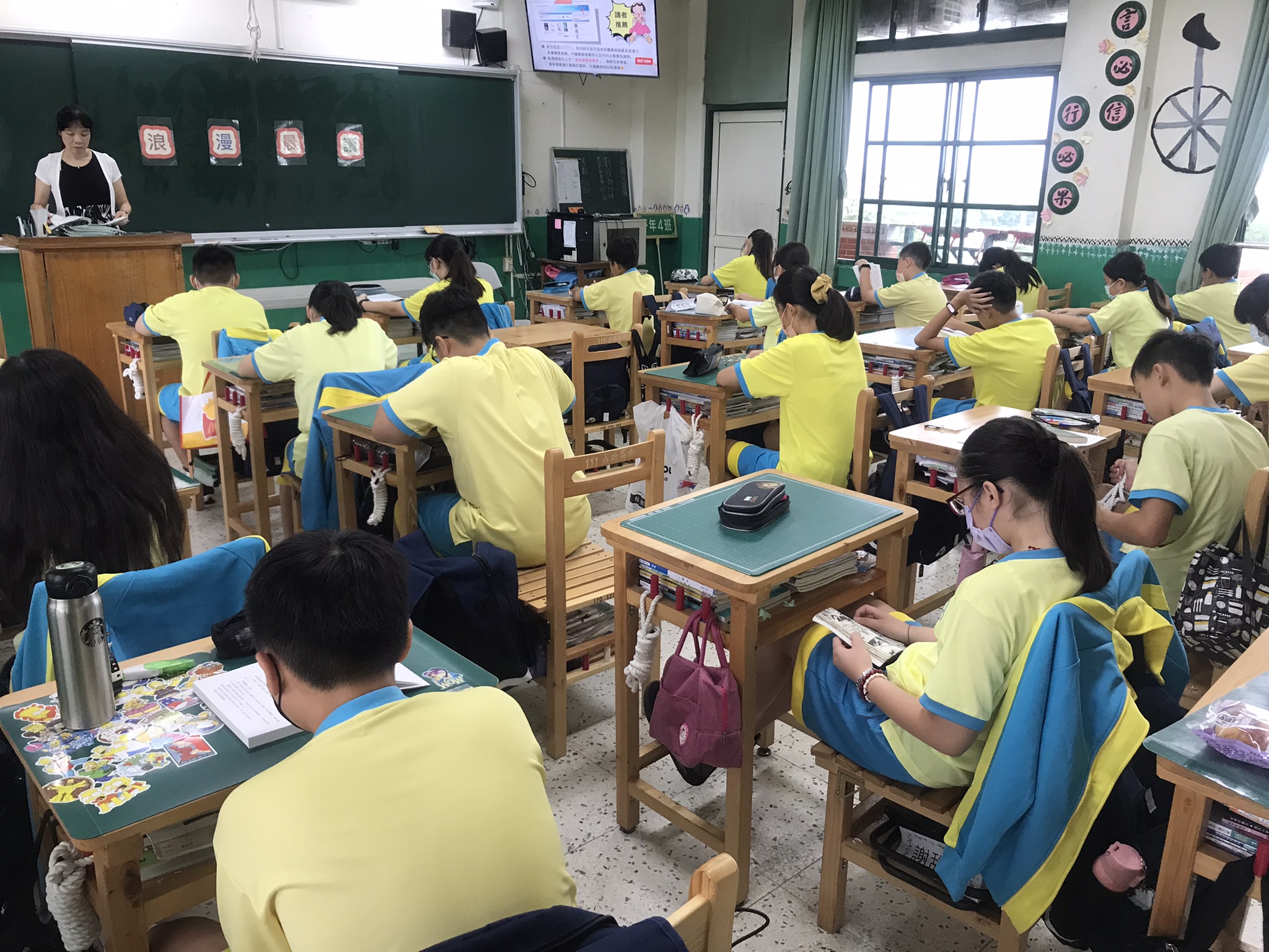 導師身教式持續安靜閱讀 (MSSR)的陪伴下,運用教育部新生贈書,法鼓山基金會贈書、彰化縣讀報教育之好報進行晨讀,學生養成了靜心、靜讀、靜學的習慣,再以家長會印製之「成功閱讀護照」,讓學子將吸收之內容,轉化成文字表達出來。