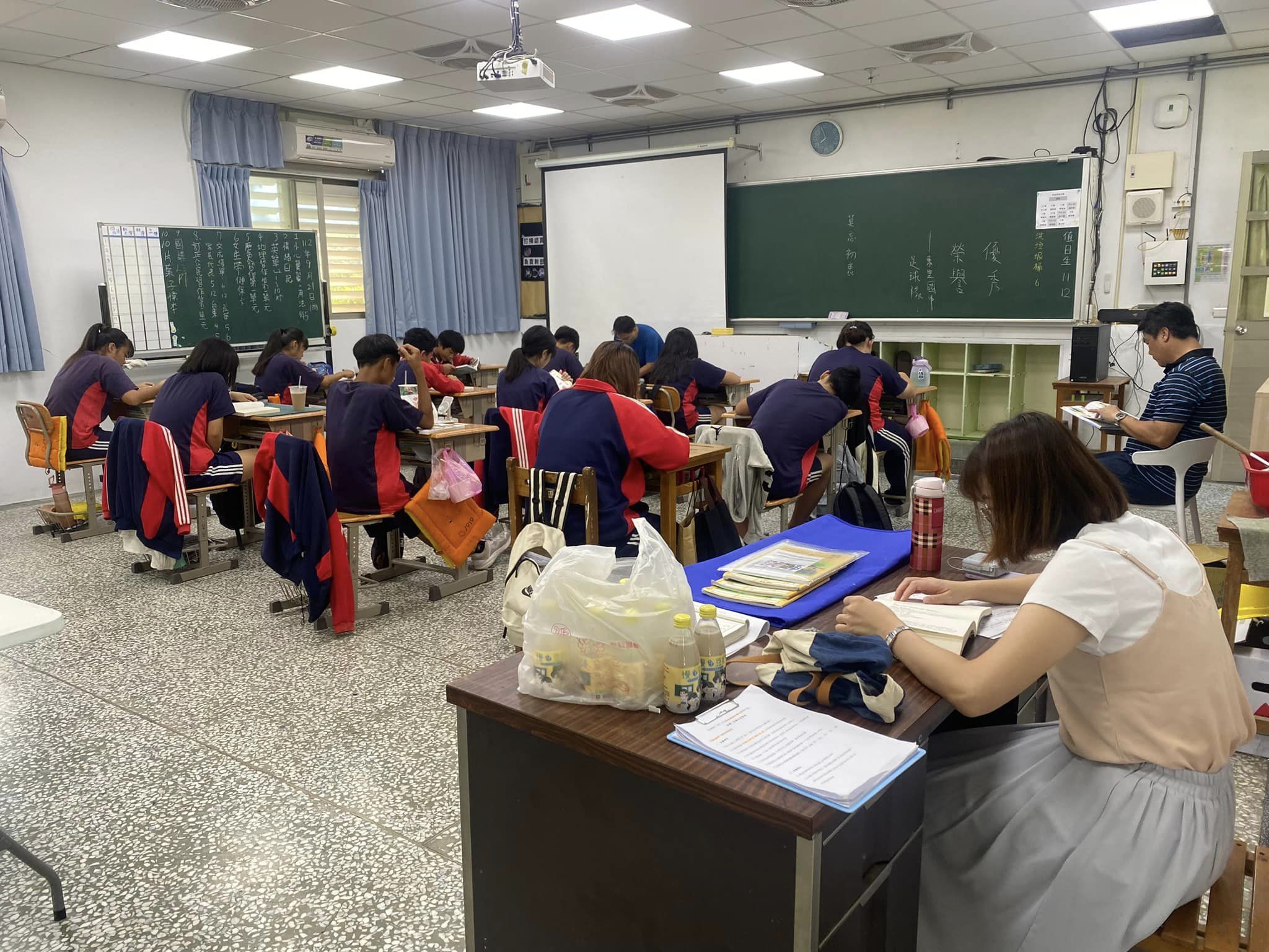 東里國中今年推展身教式閱讀已邁入第四年,以建立閱讀楷模、培養閱讀習慣為主,每週三天,導師與行政、學生共讀:週二社區家長朗讀,週四PaGamO閱讀素養和晨讀時間;週五除晨讀之外,並從老師到學生做閱讀分享,說說最近閱讀的書以及讀報的心得。