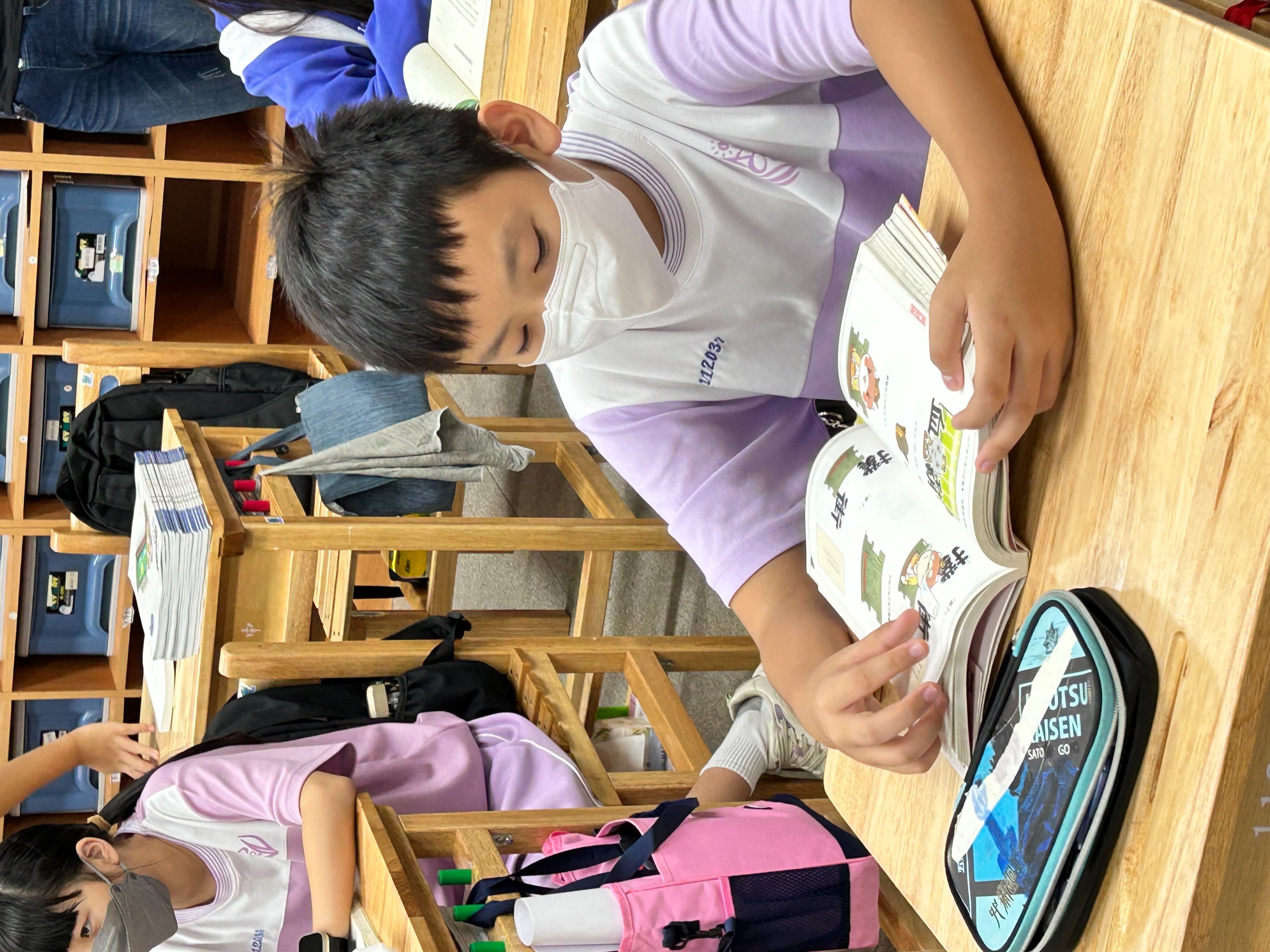 七年級新生搭配新生贈書活動,讓學生自選書籍、閱讀、書寫分享,七八年級搭配晨讀本、讀報、書箱、英語雜誌閱讀等多元活動,每週一次,高中部無早自習後,提供書箱,學生自行閱讀。