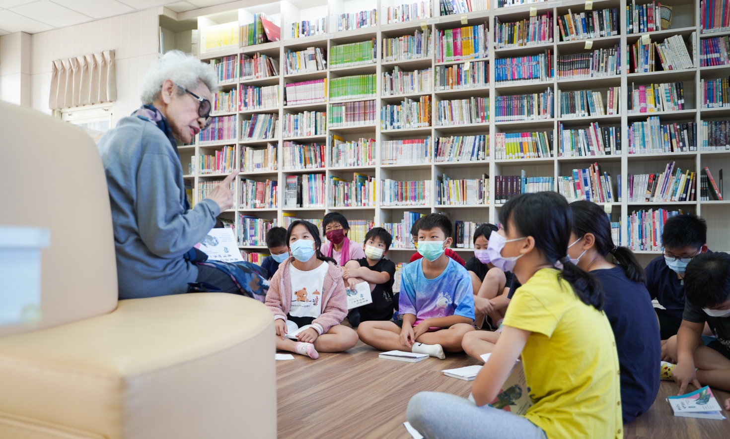 孩子喜愛閱讀,從中吸收知識、轉換到產出,教師實施跨領域「主題式閱讀」,融入行動載具輔助學習;孩子每週集會與師生「說書」,推薦喜愛的書籍;再結合語文和藝文領域專業師資,引導孩子們理解繪本、轉換思考並「創作小書」、「繪圖故事」!每學期各班孩子都有表演的機會,可以配合主題選擇繪本,或演出自行創作的故事,融入議題、寓教於樂!