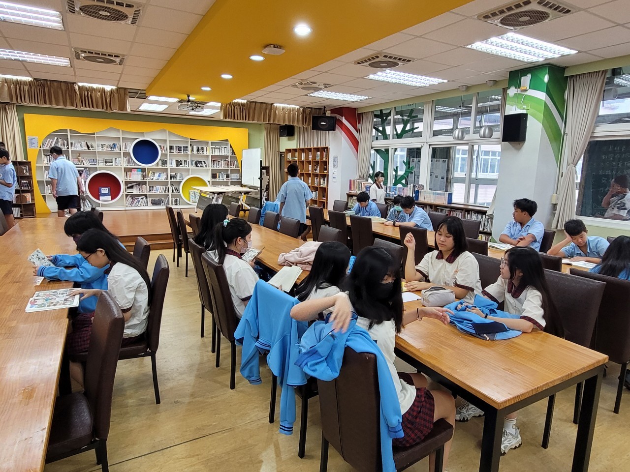 每週三、五為晨讀時間,閱讀素材有共讀書箱、圖書館書籍、好讀周報(搭配閱推教師自編讀報學習單)、中學生報、跨領域悅讀手冊等,七八年級各班有一位閱讀小推手,導讀培訓後在班上為同學導讀悅讀手冊。2023配合國圖「為你朗讀」活動,師生(含幼兒園)都踴躍參與。