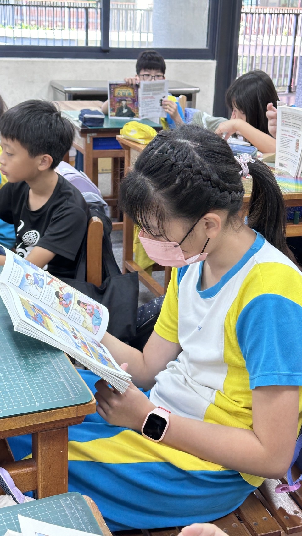 由校長以身作則及老師們的帶領下,每週五晨光時間進行全校閱讀活動,全校師生一起享受這段寧靜的閱讀時光。