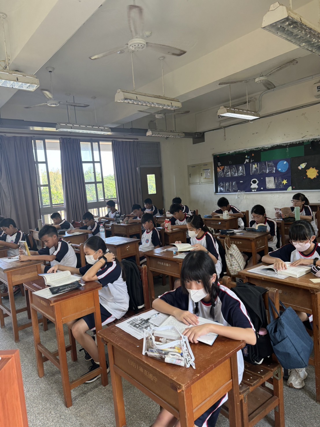 本校每周一、二晨讀時間持續進行MSSR活動,由各班導師以身作則,帶領班級閱讀風氣。學生選擇喜愛的圖書安靜閱讀,除了在教室閱讀之外,導師也可選擇帶領學生至共讀站進行晨讀蓄電。閱讀完畢後,學生自由領取思考單撰寫其閱讀心得與圖畫創作,優秀作品公開表揚並鼓勵學生繼續分享。