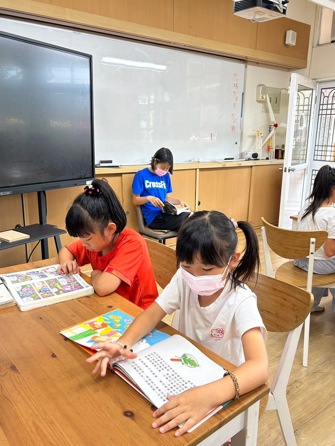 為深化學生的閱讀習慣並提升其閱讀興趣,學校推動了「教師身教式閱讀」計畫。教師以身作則,帶領學生進行閱讀,並通過閱讀發表活動,提升孩子的閱讀理解能力和表達能力,幫助他們在學習過程中建立良好的閱讀習慣。