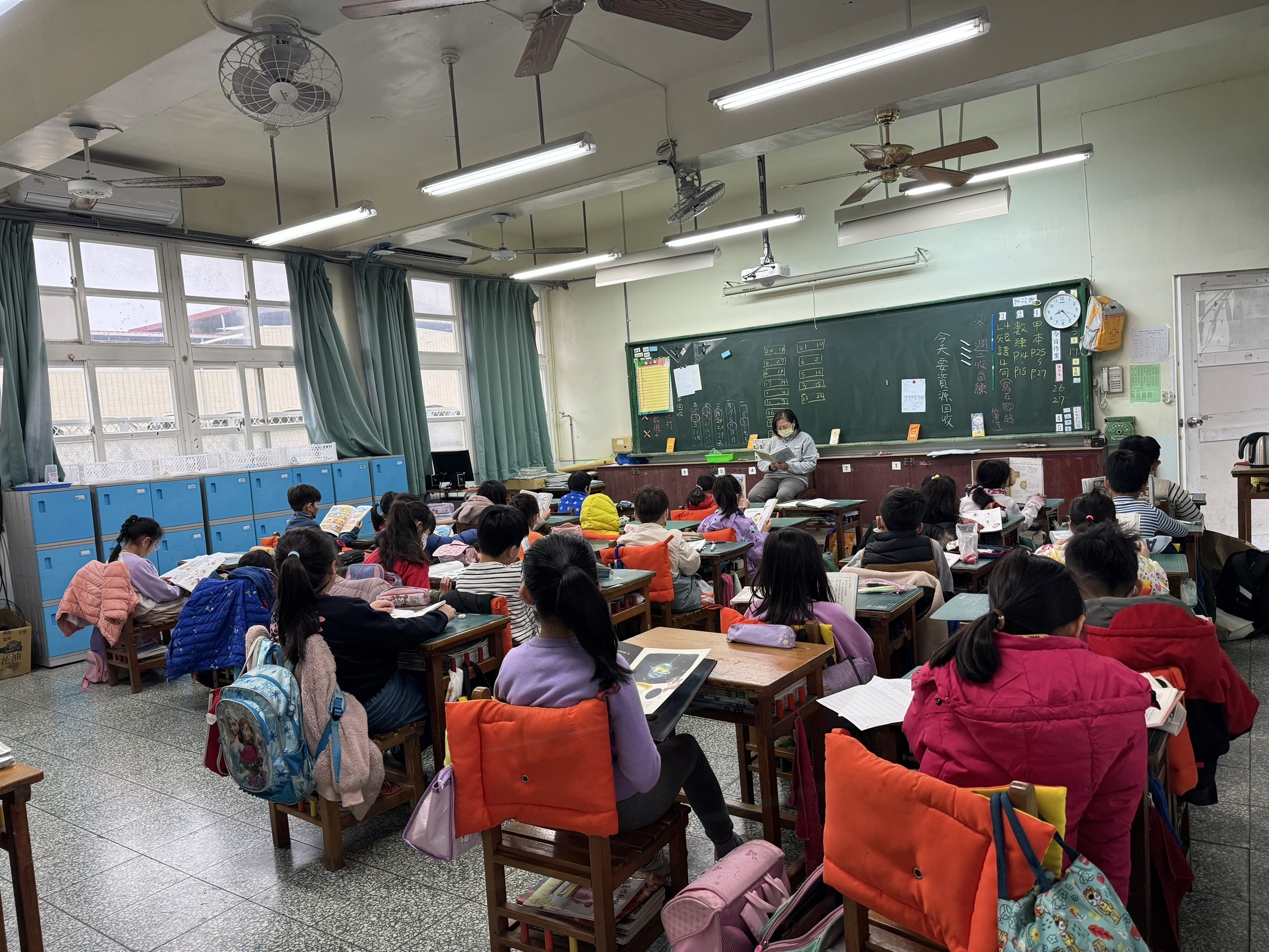 每個早上八點十五分到八點三十分的這段時間,我們學校推行「MSSR」的活動。學生人數眾多,配合愛的書庫巡迴書箱,以及學校行動共讀書箱,進行『Modeled 』(也就是『身教』的意思)、『Sustained』(持續)、『Silent』(安靜)以及『Reading』(閱讀),所以『MSSR』這四個字母合併起來,就是『身教式持續安靜閱讀』,累積總時數可觀。