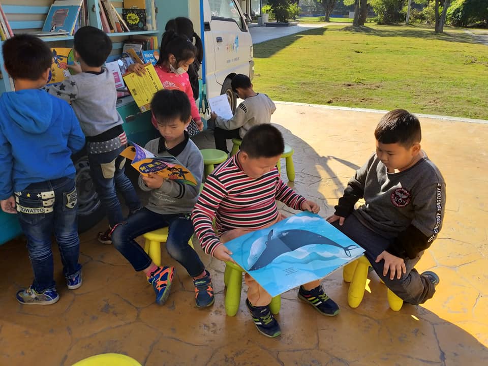 導入閱讀志工,協助學生借、還書與圖書整理,有說書小達人、閱讀小達人和故事媽媽等活動,提升學生閱讀動機與溝通發表能力。
