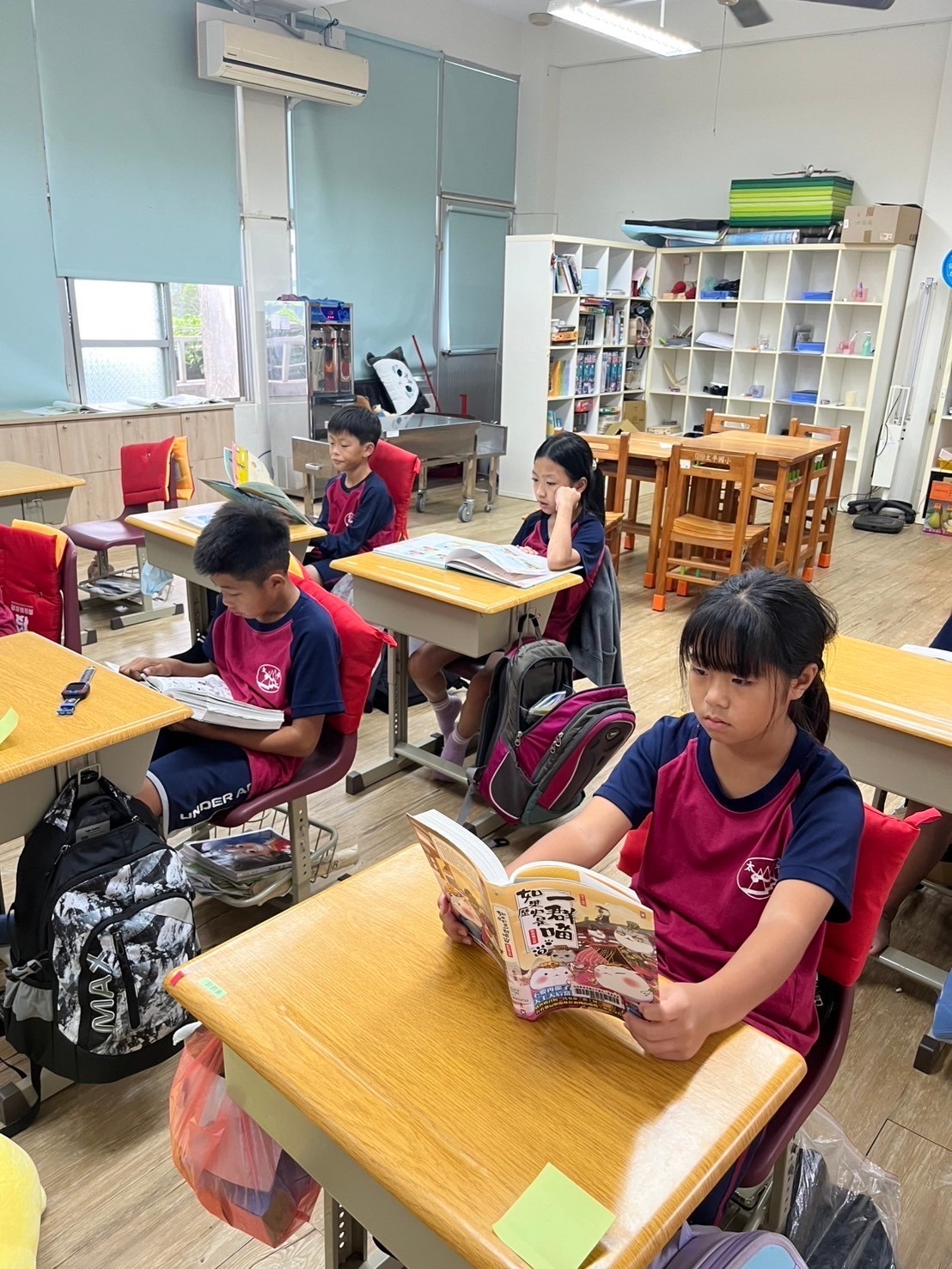 學校訂定每週四上午晨光時間為全校MSSR「身教式持續安靜閱讀」(Modeled Sustained Silent Reading)的時間,讓全校師生沉浸在書香的氛圍中。另外,全校利用[愛的書庫]的書箱進行各班共讀,低年級獲贈康軒學習雜誌及益智國語週刊,三年級獲贈兒福聯盟的[小永報]進行讀報教育,四年級獲贈「未來少年」刊物,高年級獲贈安妮日報等,在閱讀的材料上更豐富。
