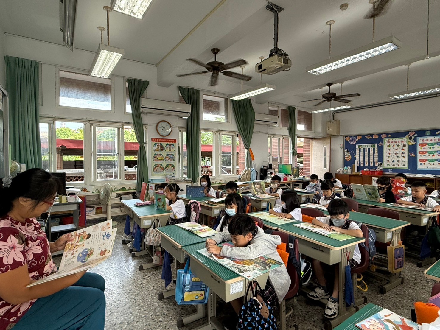 十、晨間身教式閱讀:一〜六年級各班於每天 07:50〜08:00 晨光時間實施身教式閱讀,教師於晨讀時間放下手邊工作與學生一同閱讀。