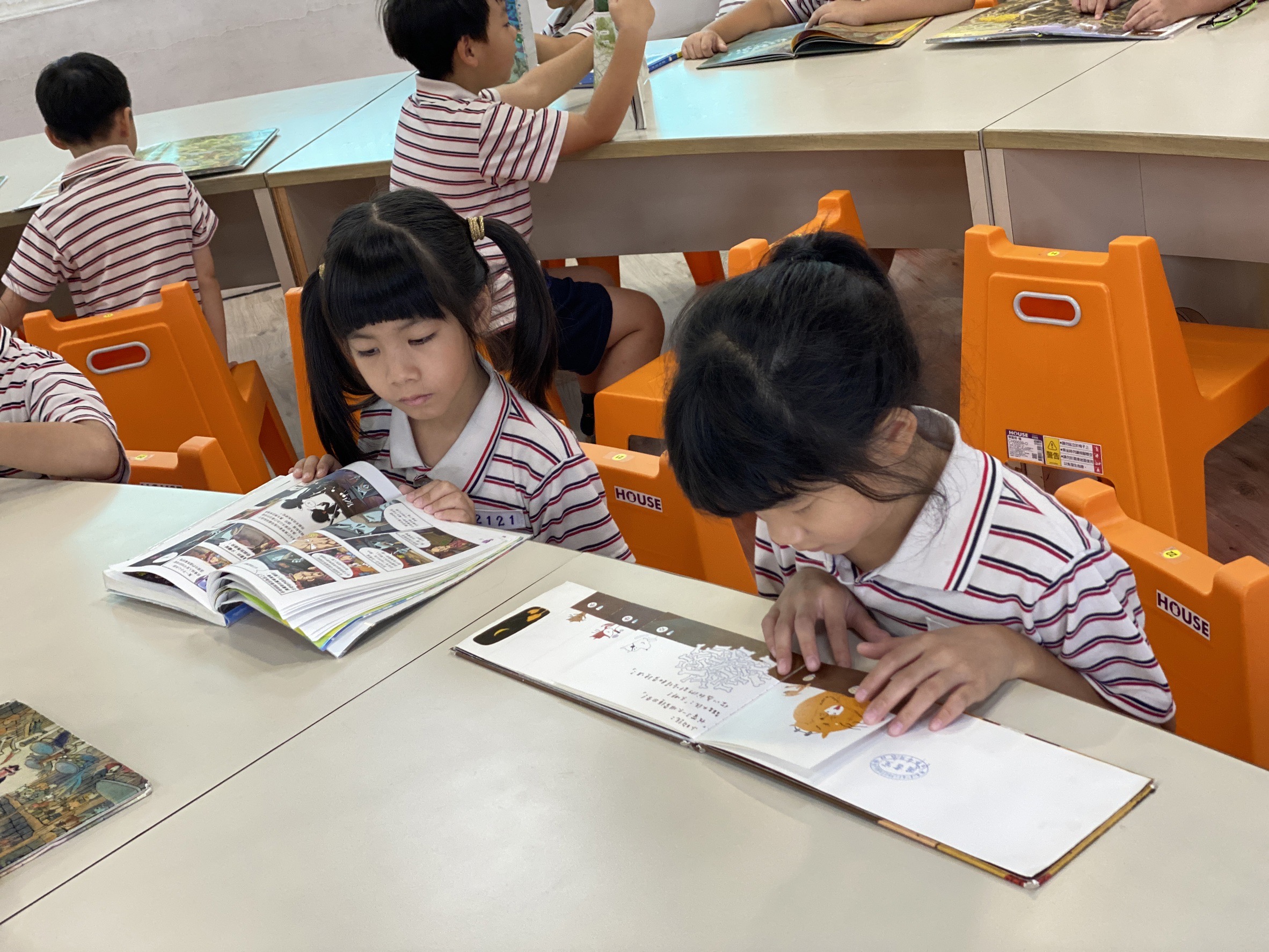 本校每年級有五班,每班26-29名;語文是開啟各項學習的鑰匙,而本校語文學習著重在學生的母語、本國與及外國語的均衡發展。除提高學生運用語言的能力之外,同時感受語言文字之美,培養語文學習的興趣;每週每班都有規劃一節閱讀課,更安排班級讀書會、晨間靜讀、晨光故事時間等活動,建構學生閱讀理解策略,使其具備高層次思維能力和良好溝通能力。