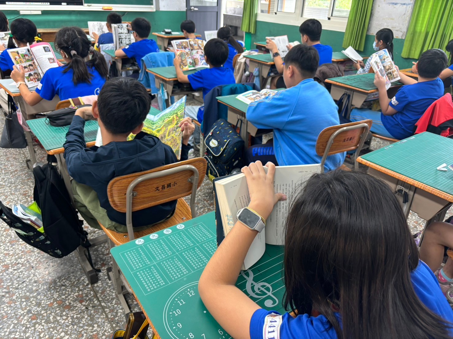 1. 每週一晨間時光為本校的晨間閱讀時間,當晨讀音樂響起學生紛紛拿起自己喜愛的書籍進行純粹閱讀。純粹閱讀是要求學生在那一段時間依自己的習慣或興趣去閱讀,從閱讀中得到樂趣、得到啟發或發現問題。透過固定時間安靜沉浸式的純粹閱讀,培養學生能主動閱讀、喜好閱讀、讓閱讀變成一種習慣,營造一個閱讀的環境及氣氛,讓學生擁有持續固定的閱讀經歷,進而養成自動自發的閱讀習慣。