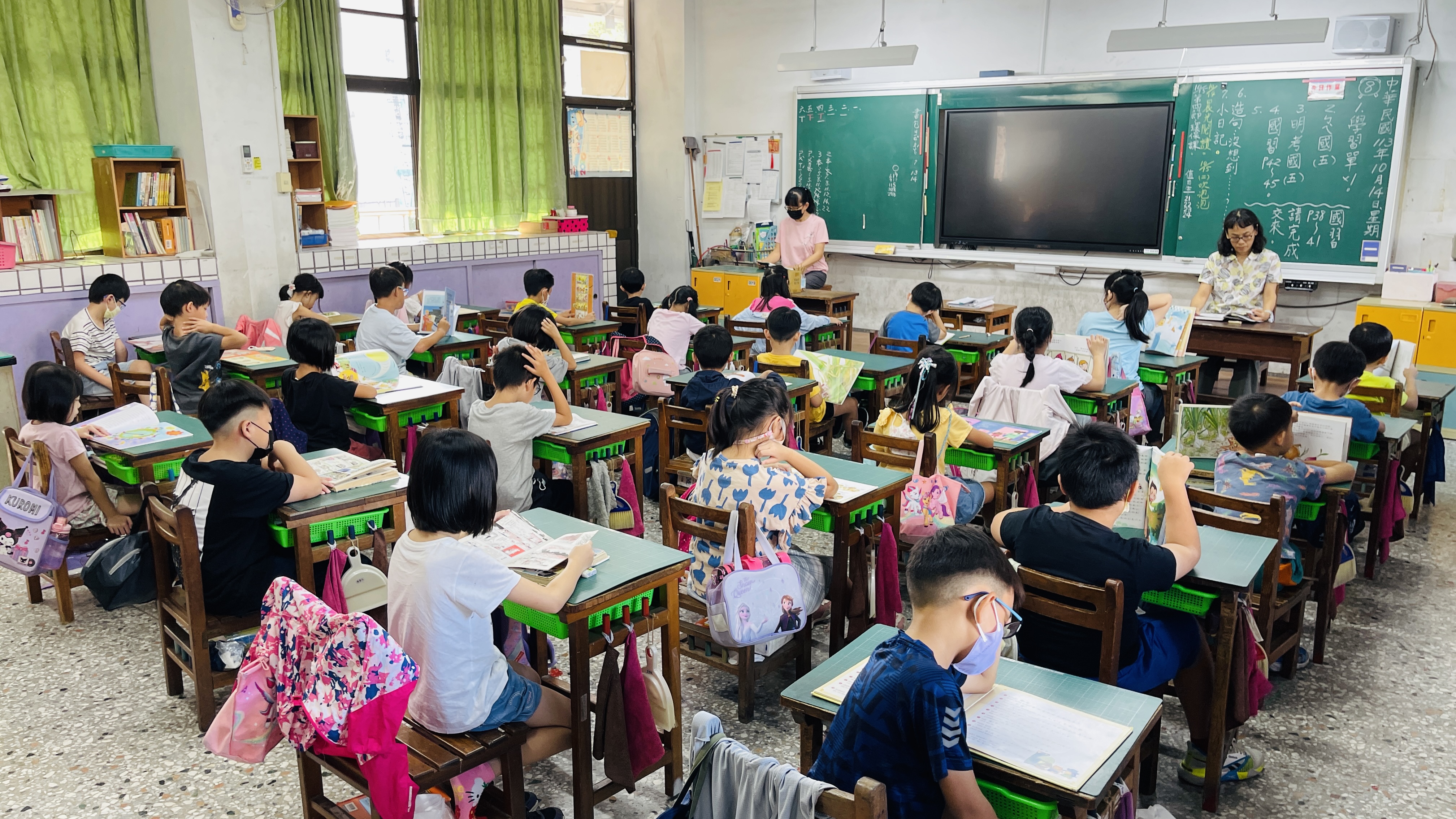 1. 本校持續參加身教式閱讀與聊書計畫已邁入第五年,由校長與教師群以身作則帶領學生,每週一、二、五早修全校進行晨光閱讀,當熟悉的音樂響起時,師生暫時放下手邊的工作,一起享受這段寧靜又神清氣爽的晨讀時光。