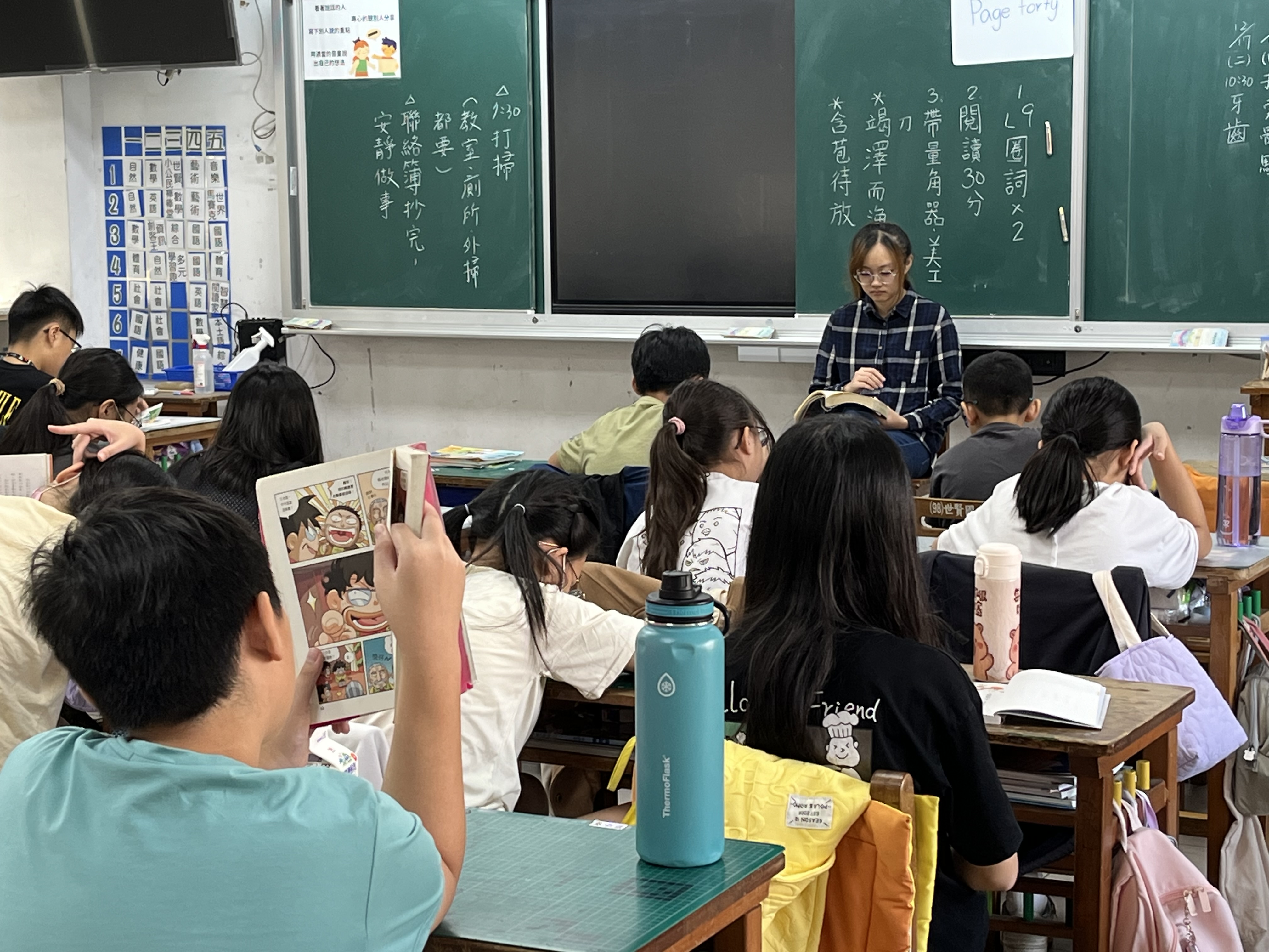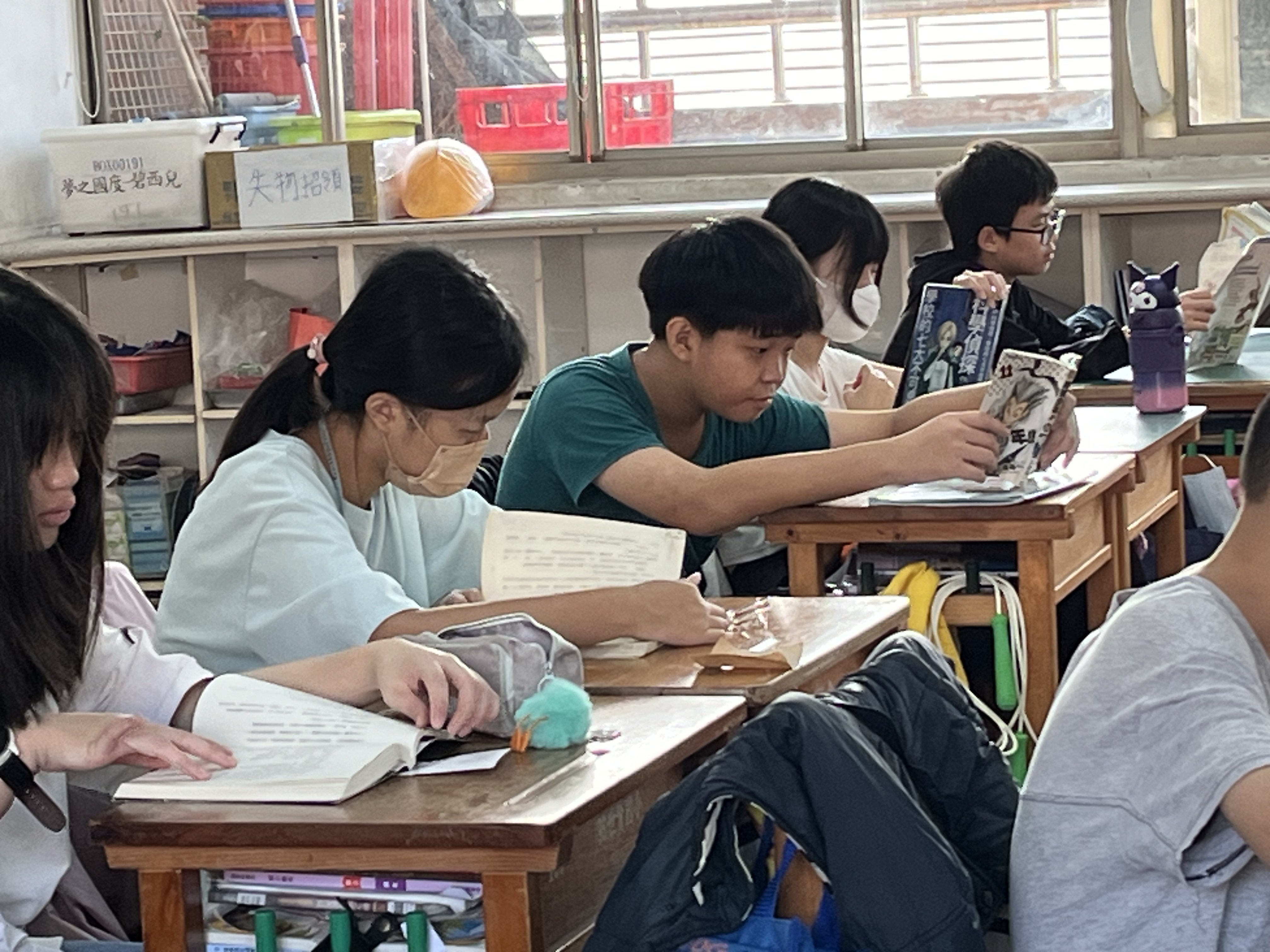1. 世賢國小實施一週兩次的晨光閱讀,每週三及週四的早自修,從早上的8點15分開始,實施15分鐘的晨光閱讀,由翁崇文校長帶領老師陪伴全體學生一起晨讀,沉浸於歡樂的閱讀時光中。除了一周兩次的晨讀實施,還推動家庭身教式寧靜閱讀活動,邀請家長每天在家花10分鐘陪伴孩子一起閱讀,不僅在學校推動,更落實於家庭教育中。