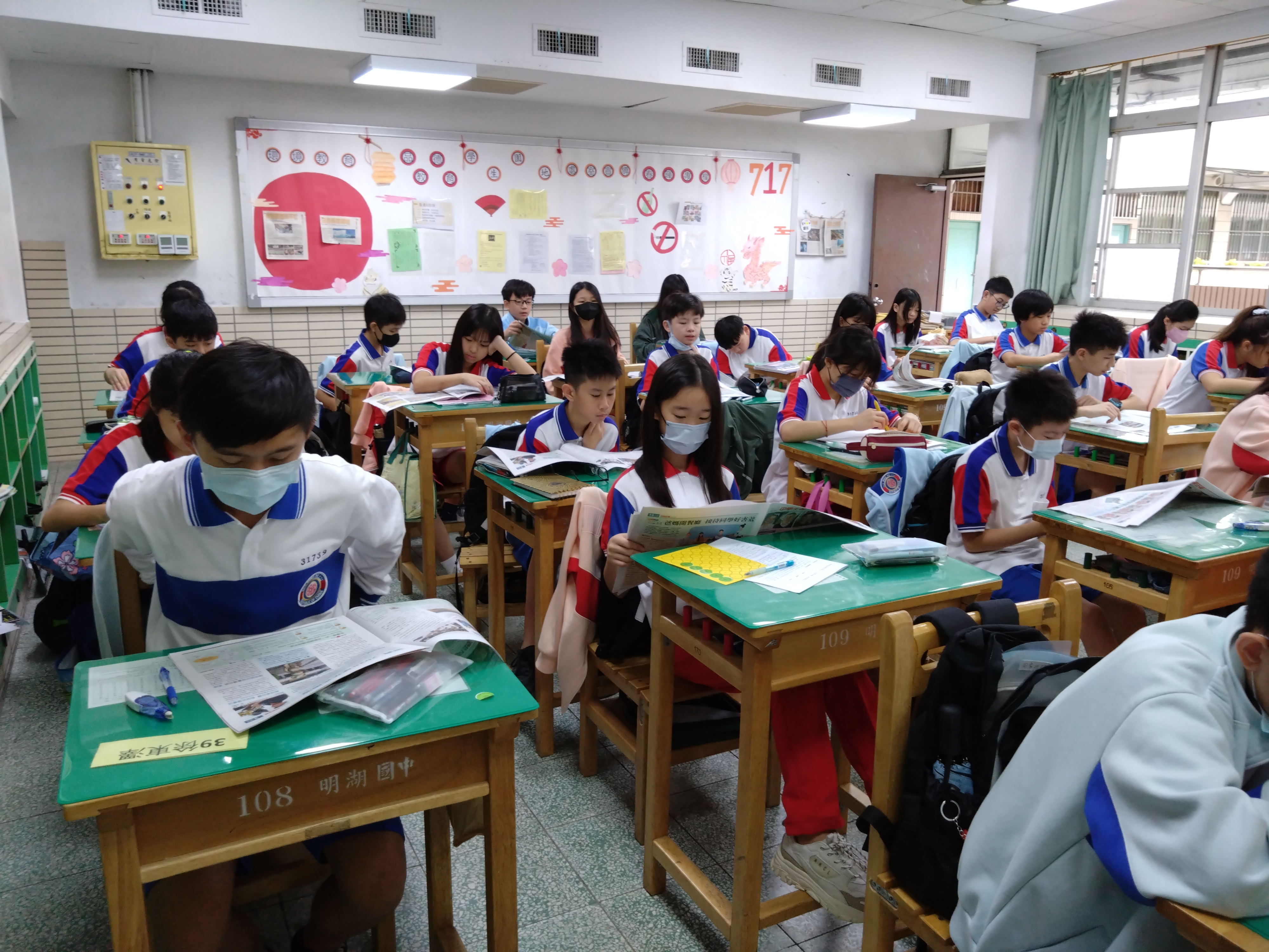根據本校的核心課程-閱讀教育、數位智慧教育、國際教育,本校以線上影音方式進行跨時空說書。校長以身作則率先錄製說書影片,接著主任、教師們也群起響應,錄製多則介紹書籍的影片放置在圖書館粉絲專頁。接著,更將說書的模式繼續發展到為九年級錄製「考生加油站」,將自己的故事或是閱讀到的故事錄製成一則則激勵人心的故事讓導師們於晨光時間、午餐時光,或班週會播放。會考結束後,則由九年級學長姐負責為全校說書,錄製文章導讀影片於晨讀時間播放,再進行全校共讀,並由閱推社群負責批閱。優秀作品將由圖書館負責公告張貼讓全校師生一起共賞。