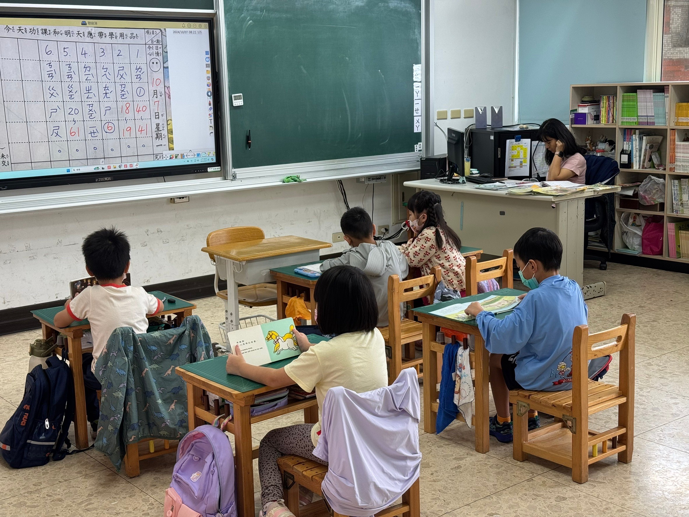 本校每週週四升旗外,週一沉浸式身教閱讀、週二英文閱讀、週三說書、說書培訓、週五古文唐詩背誦與發表,將閱讀融入在校園中,校園即為沉浸。