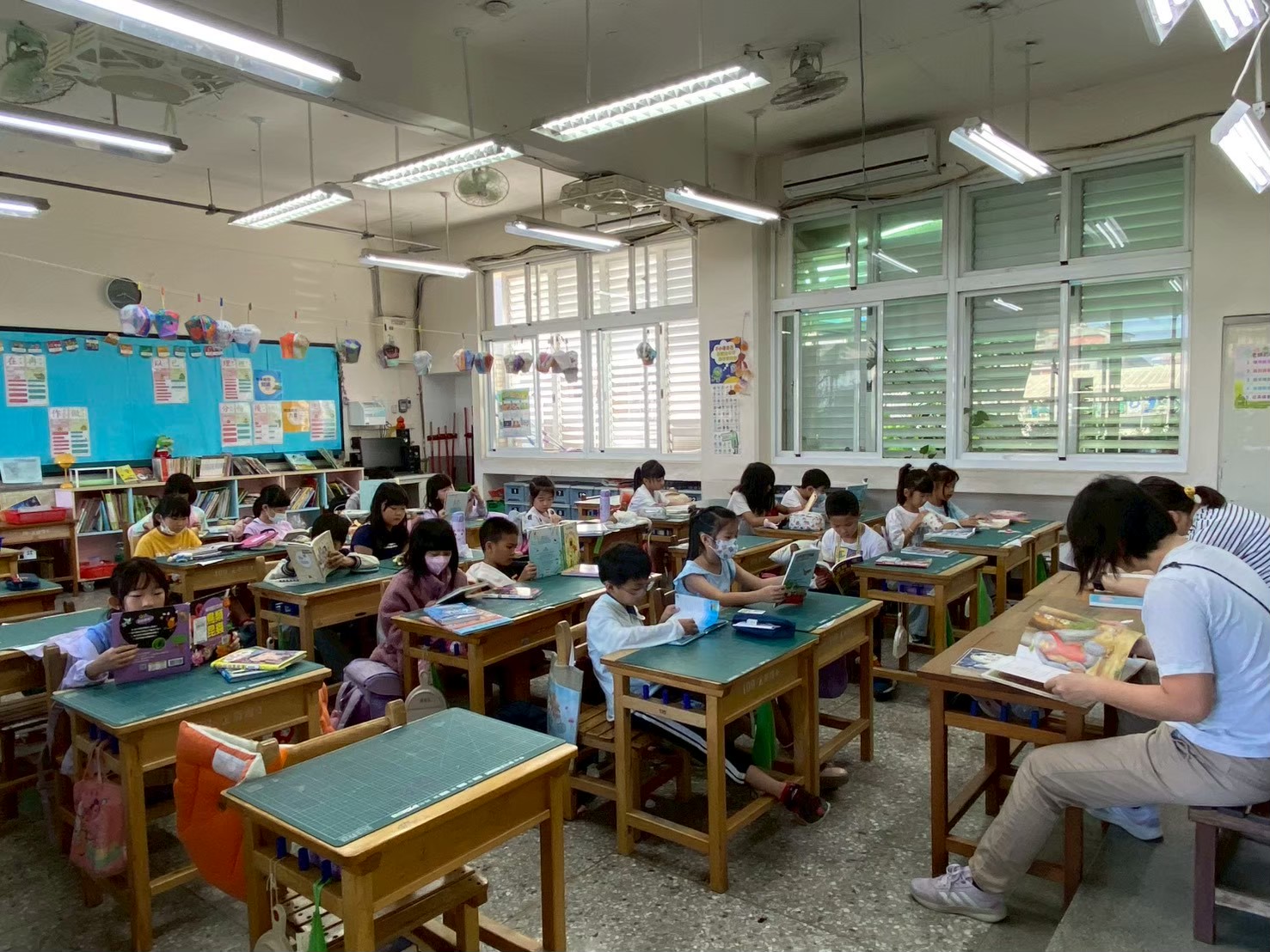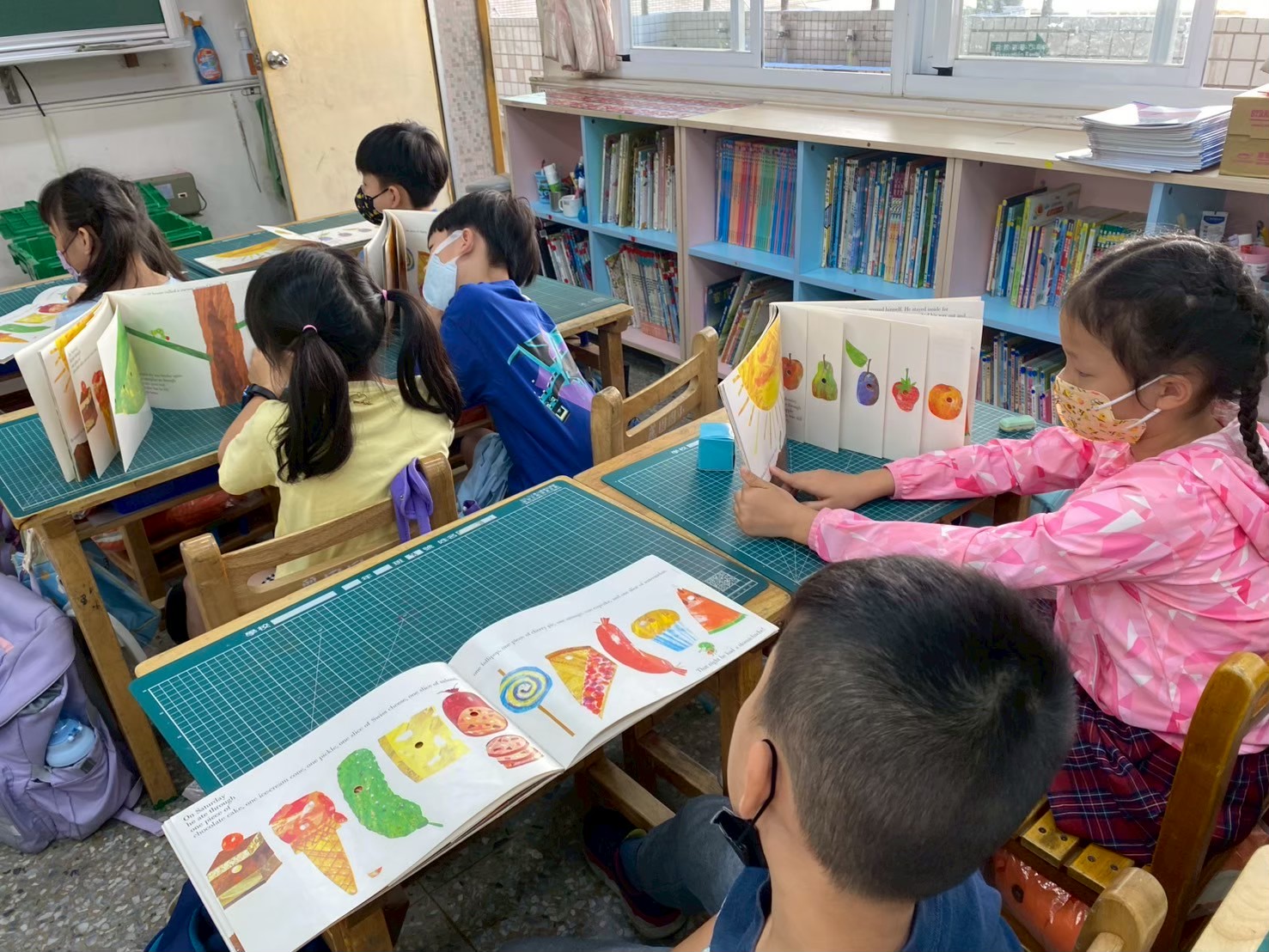 透過班級書箱、共讀書、校長、行政及老師晨間陪讀、閱讀課程「好書推薦」指導等推動晨讀運動,培養師生的閱讀習慣,藉由閱讀豐富學生們的視野。師長以身作則,陪伴孩子晨讀。教務主任與外師為低年級學生閱讀英文繪本,讓學生對英語讀物的興趣。閱推老師入班聊書,延伸學生閱讀的廣泛度。