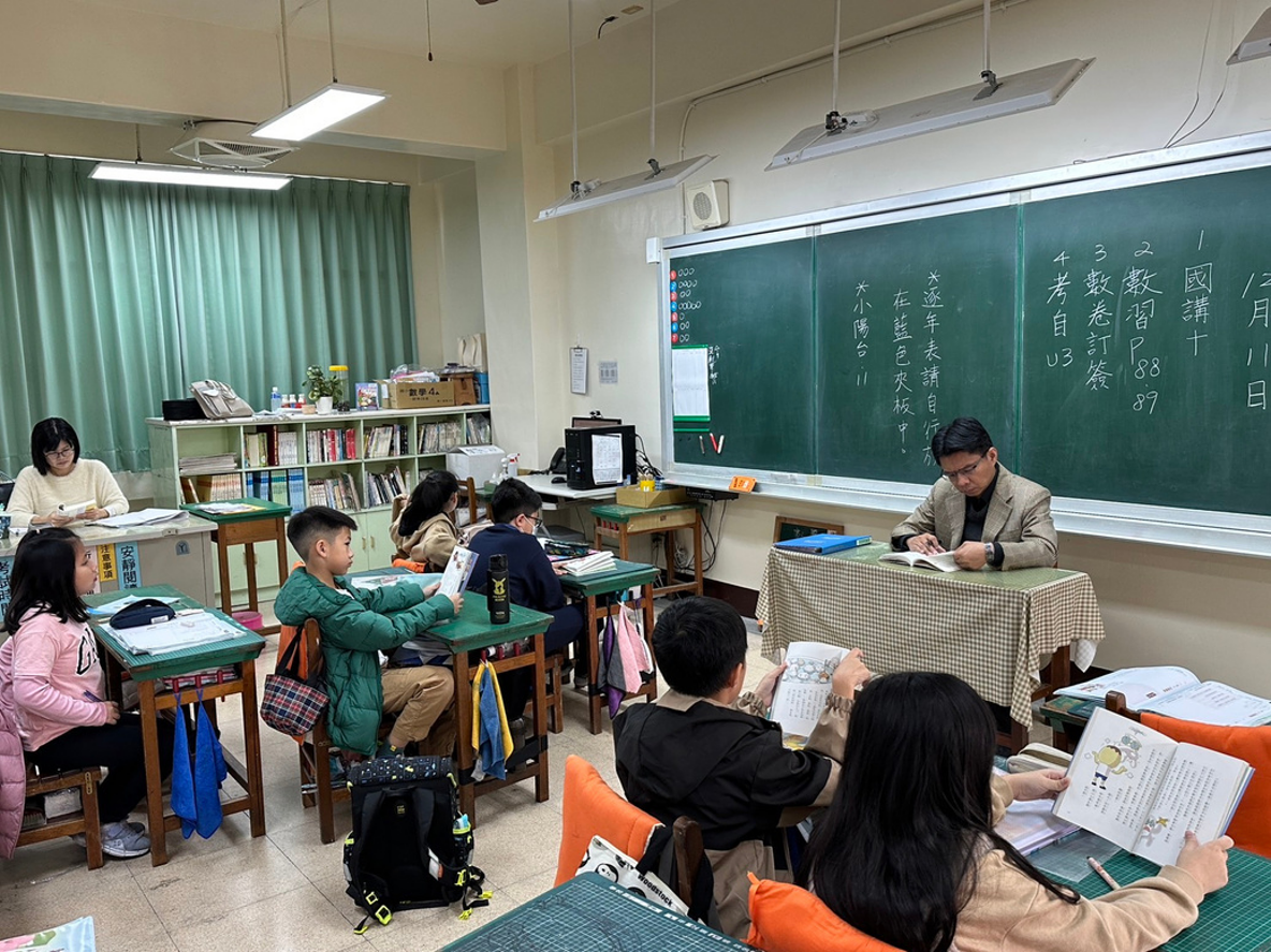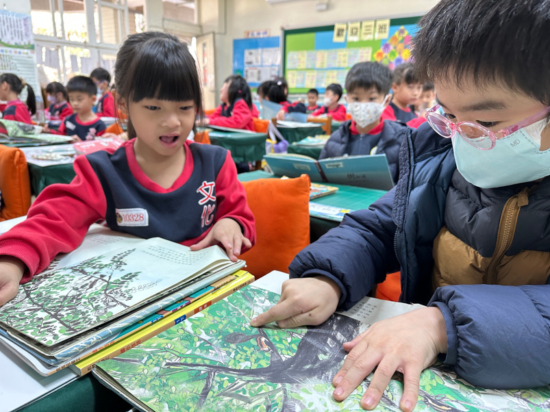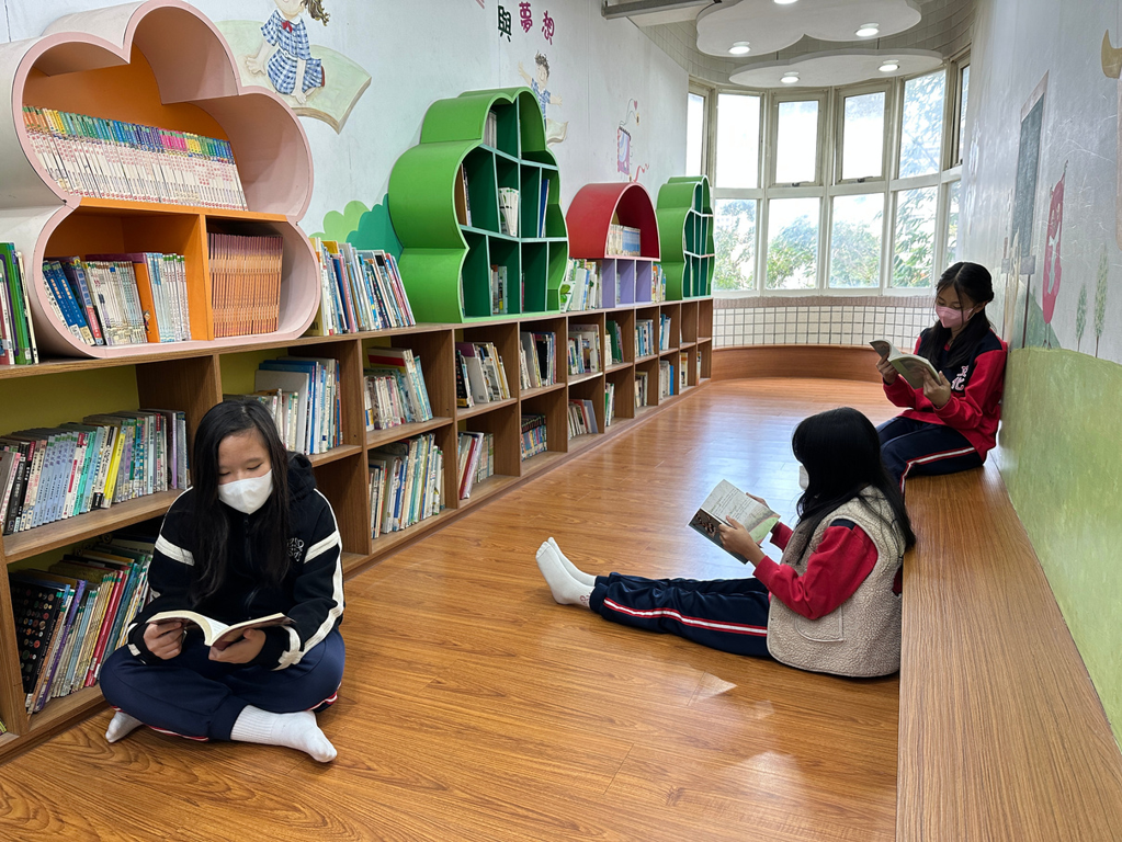 學校端規劃晨讀時段入班表,讓閱讀成為每日固定習慣;各班設有班級書庫與閱讀角落,並定期輪換共讀書籍;申請愛的書箱補足圖書館藏的限制,讓孩子隨時能接觸多元主題的書籍;校園中也設置「漂書小站」與「森林故事屋」,打造充滿故事氣息的閱讀環境。