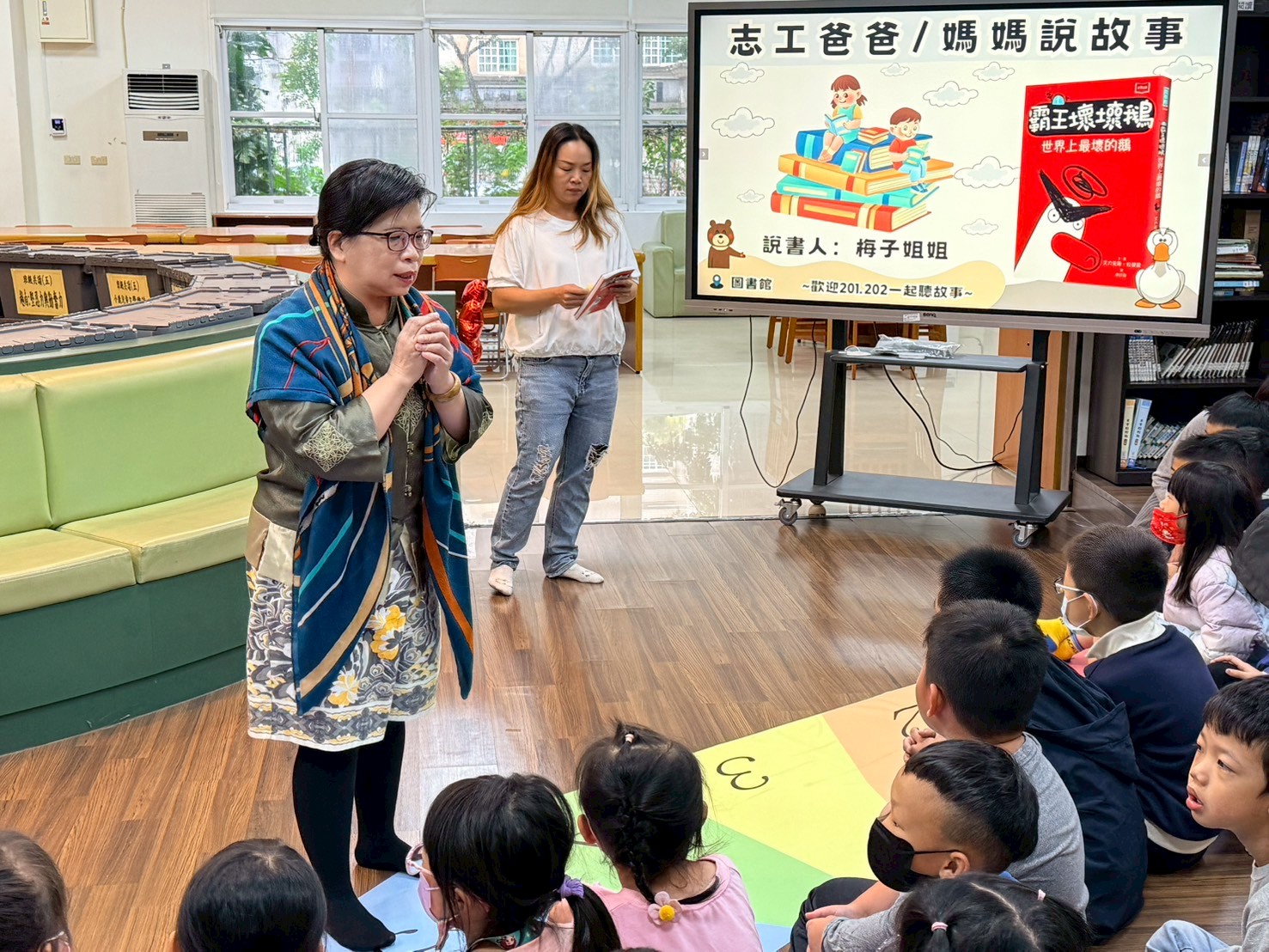 校內定期舉辦志工家長說故事,透過志工說書人詮釋書本故事,並帶著學生一同討論內容,用心精彩,唱作俱佳,全校師生都非常喜愛,是本校的一大特色。