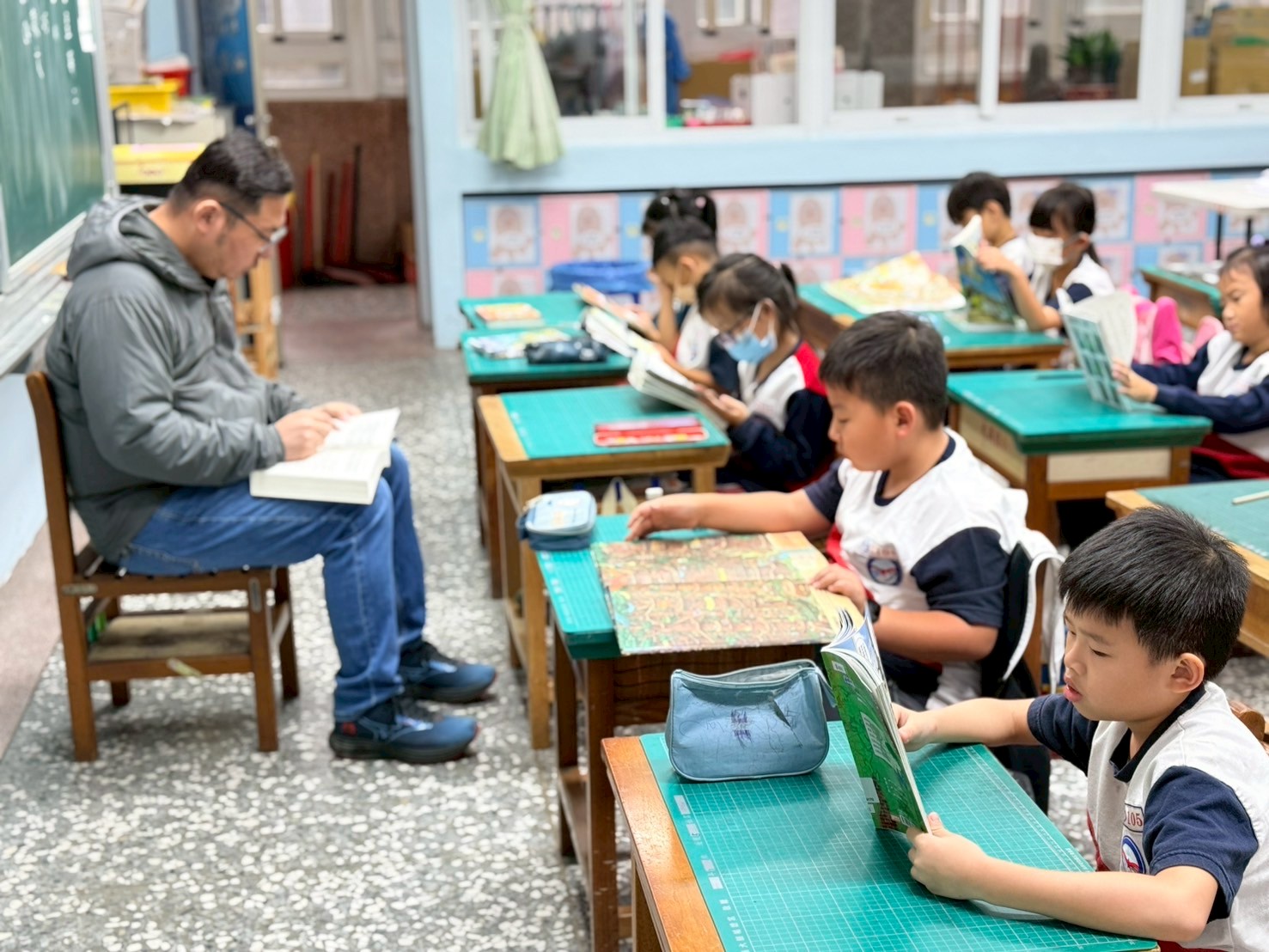 校長、各處室主任入班陪同,成了「頭號閱讀榜樣」!看著平常忙碌的校長和主任也能放下手邊工作,沉浸書海,學生閱讀起來特別起勁。,